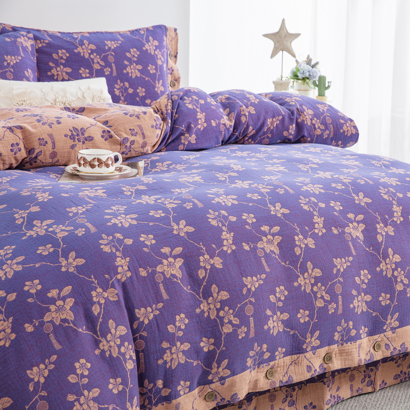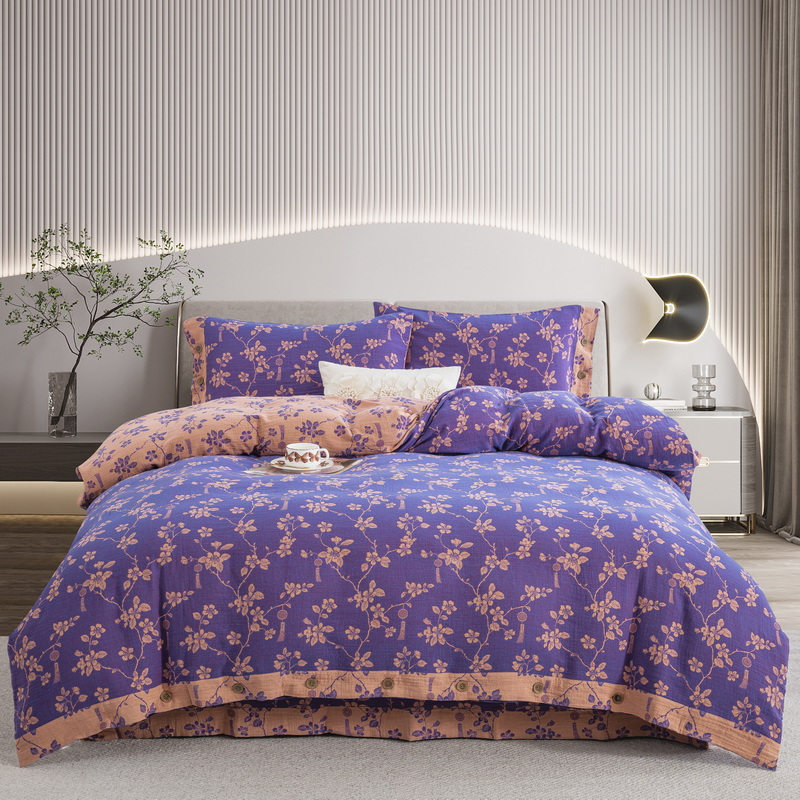 鲁爱家纺供货 2025新款全棉色织双层纱纽扣四件套 春晖-紫罗兰