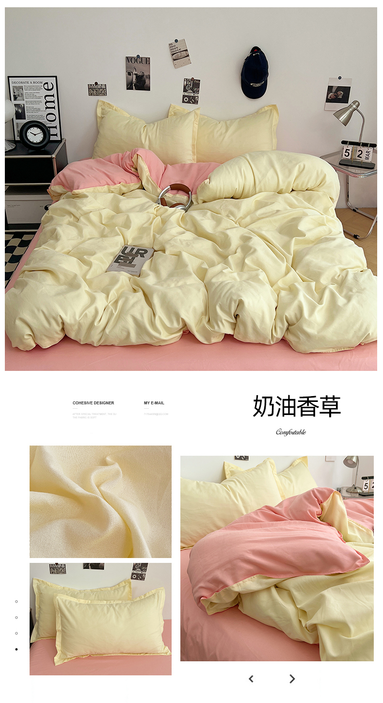 当前位置: 91家纺网 > 商品网购 > 床品套件 > 四件套 > 磨毛活性四件套 > 贝拉梦家纺 2025新款纯色磨毛双拼亲肤棉四件套 奶油香草