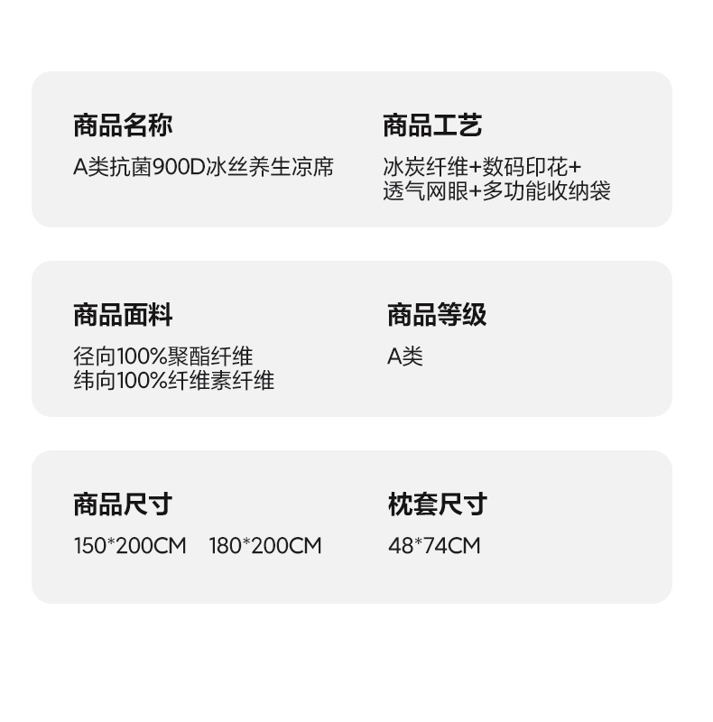 商品名称:圆岛家纺 2025春夏新款高克重900D冰丝凉席席子 野餐派对