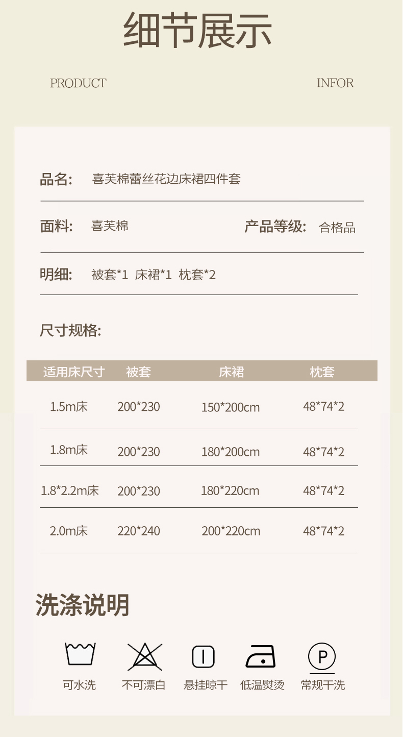 1.8x2.2m床裙款四件套 被套200x230 | ¥190.00 |