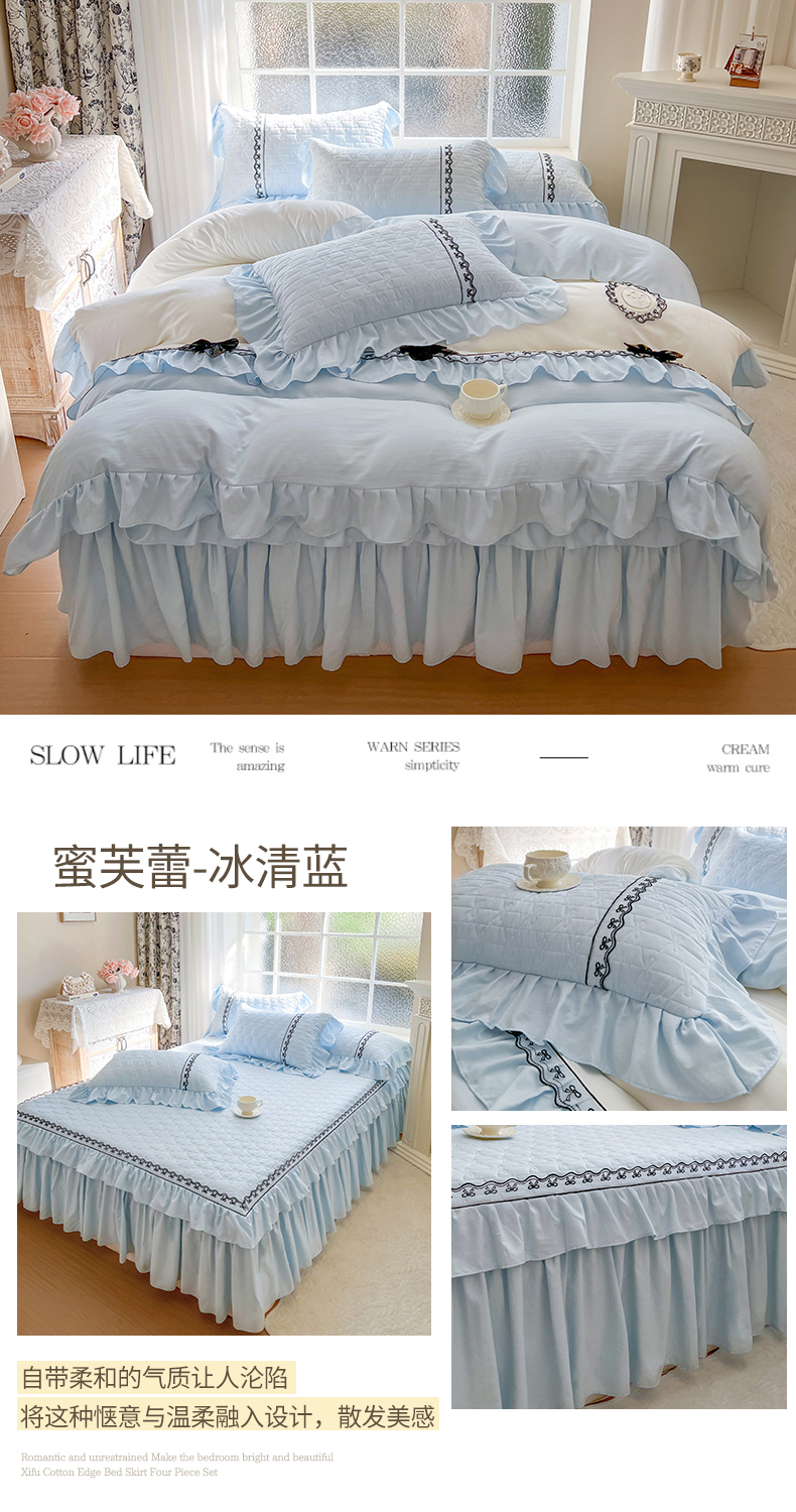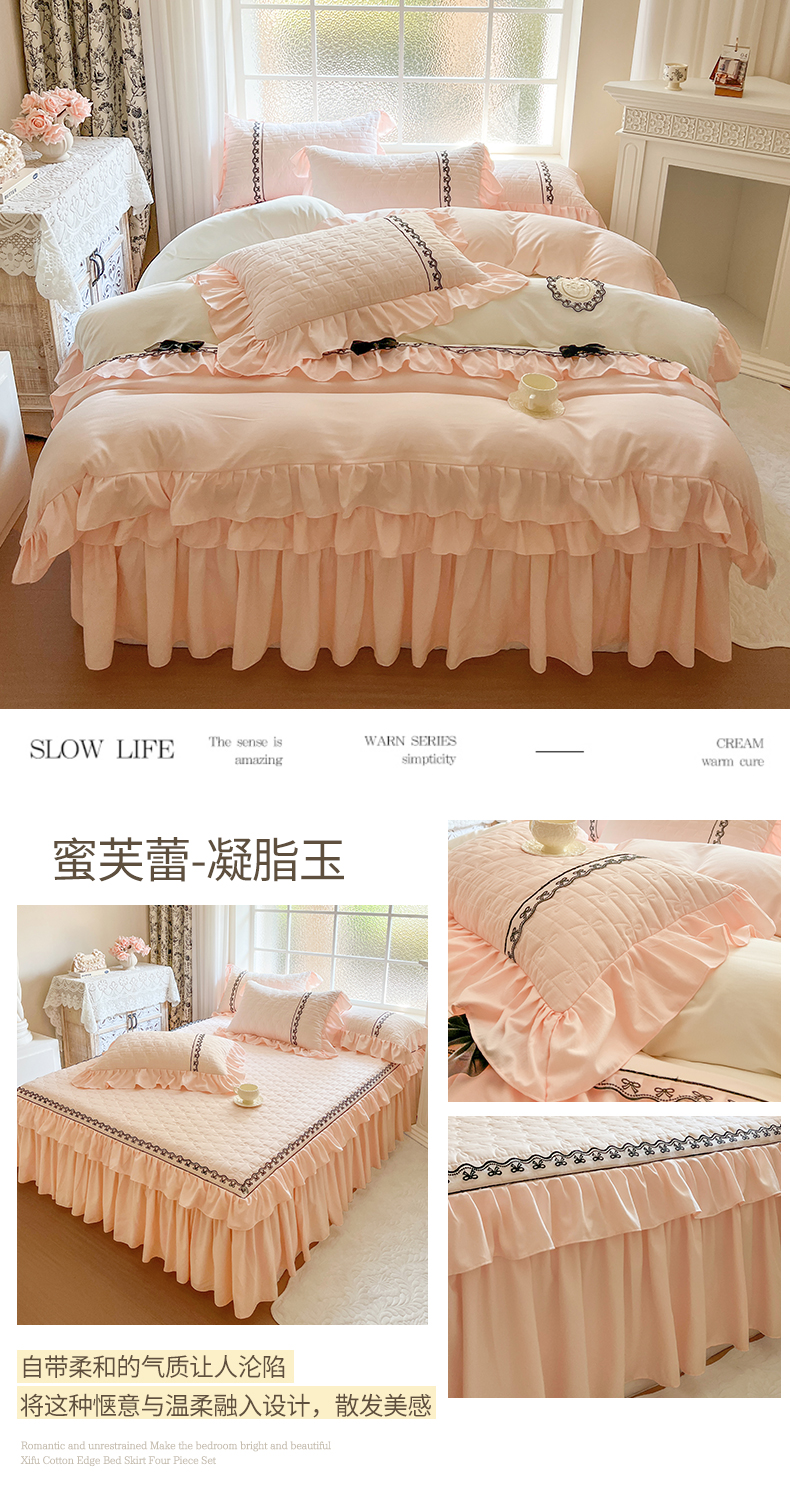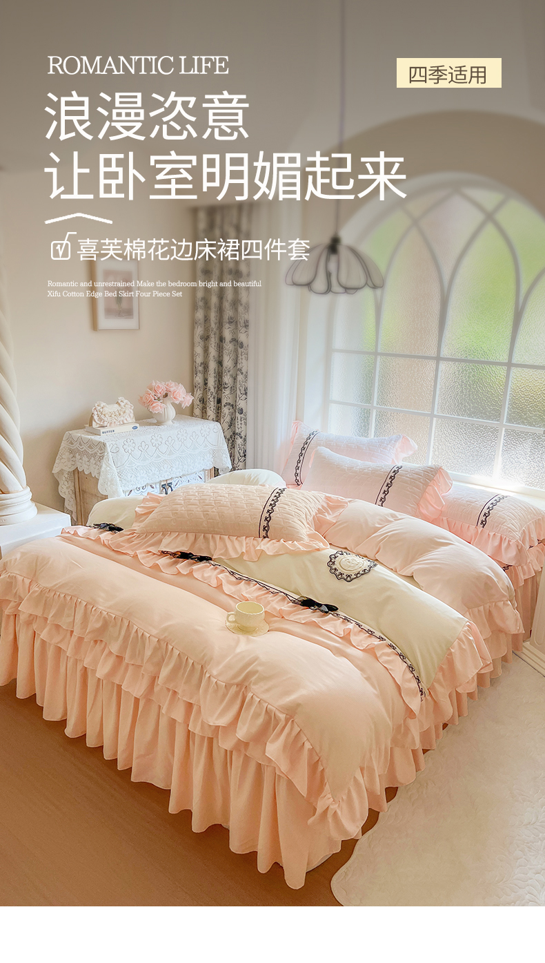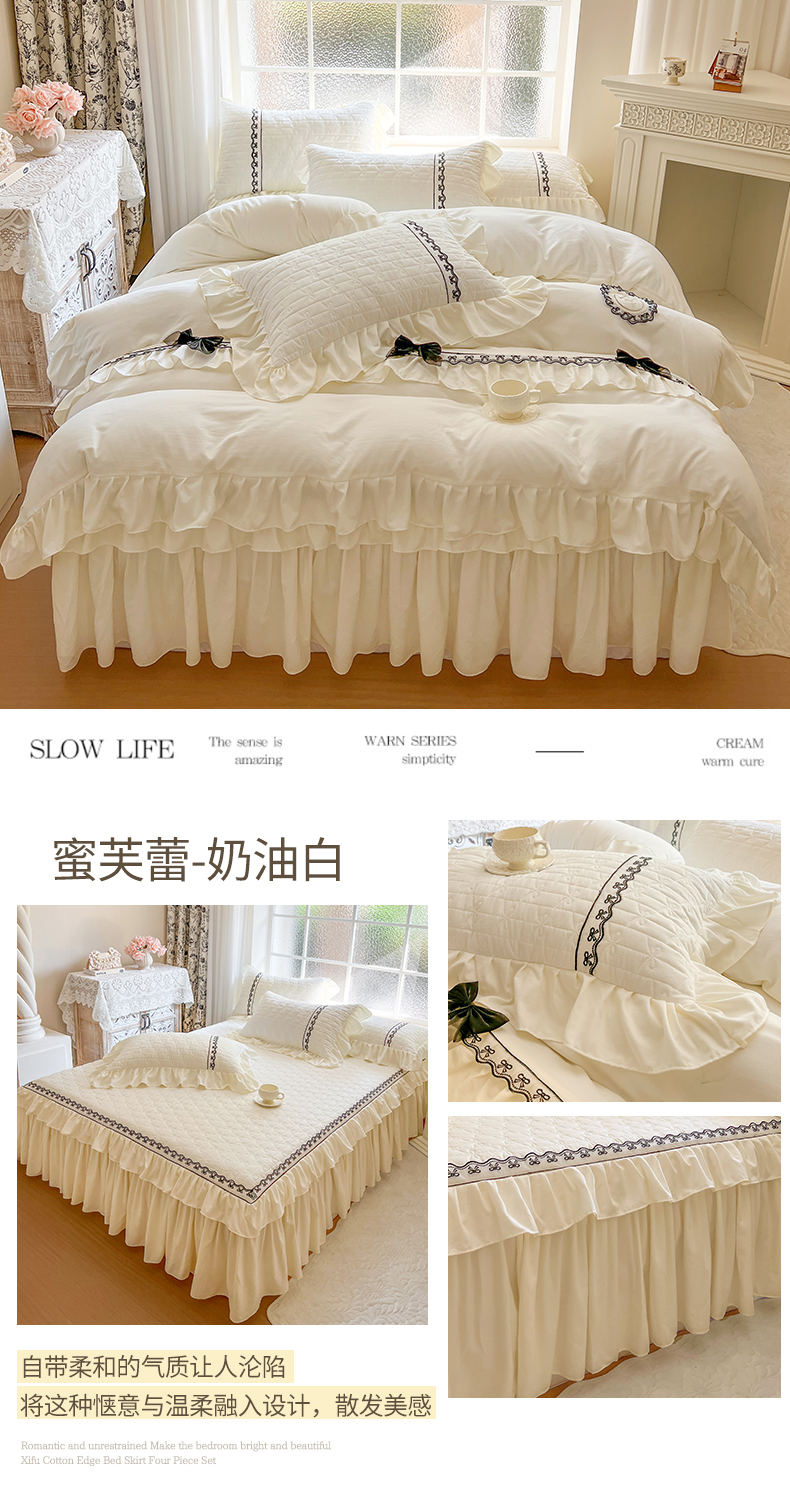 当前位置: 91家纺网 > 商品网购 > 床品套件 > 四件套 > 其它四件套 > 网红馆(ck家纺) 2025新款喜芙棉蕾丝花边床裙四件套-蜜芙蕾 蜜芙蕾-凝脂玉