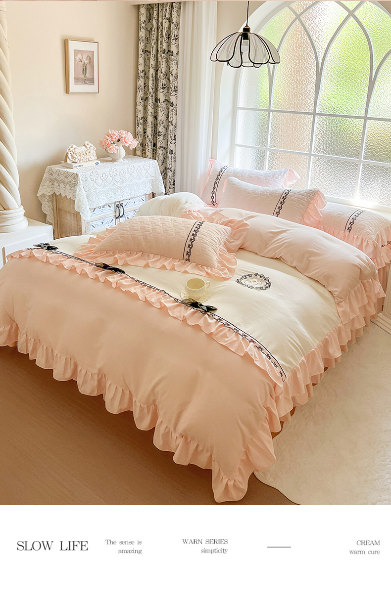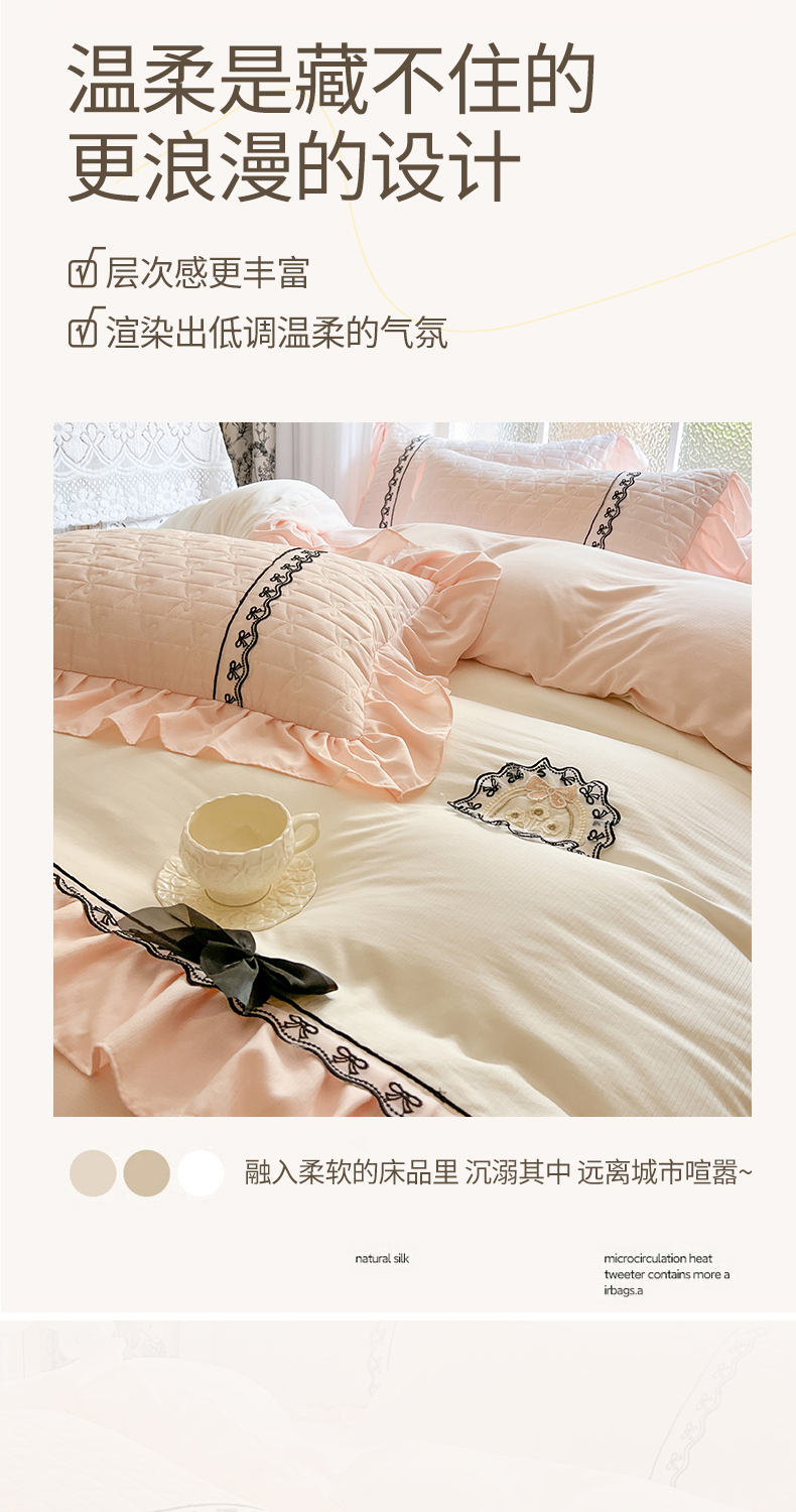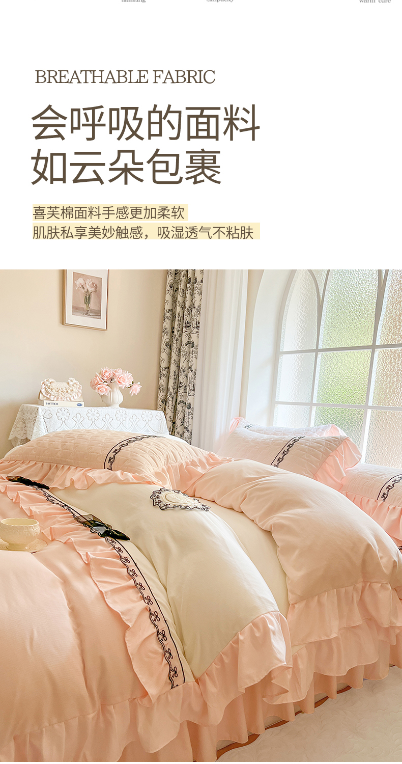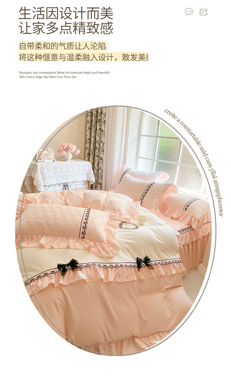 当前位置: 91家纺网 > 商品网购 > 床品套件 > 四件套 > 其它四件套 > 网红馆(ck家纺) 2025新款喜芙棉蕾丝花边床裙四件套-蜜芙蕾 蜜芙蕾-凝脂玉