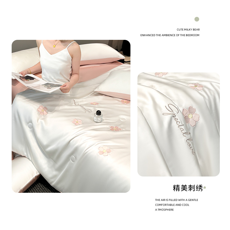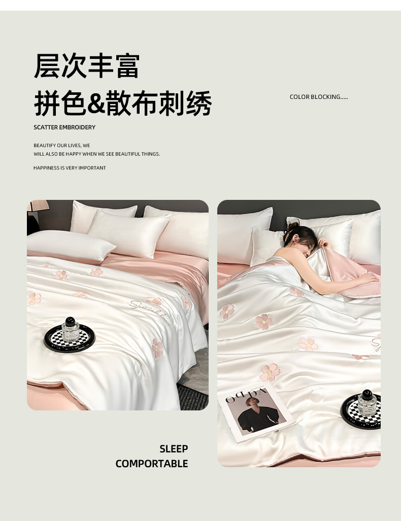 (总)满羽家纺 2025新款冰丝夏被四件套-满绣系列,蝴蝶结-奶白粉,蝴蝶结-奶白兰,蝴蝶结-奶白绿,蝴蝶结-清爽兰,迷蝶-奶白红,迷蝶-桃粉,谜蝶-奶白兰,山茶花-奶白咖,山茶花-清爽兰,山茶花-桃粉,兔子追爱-兰灰,兔子追爱-奶白粉,兔子追爱-奶白红,兔子追爱-奶白咖,星星羊-奶白粉,星星羊-奶白绿,郁金香-奶白粉,郁金香-奶白兰,郁金香-奶白绿,DC-宾利蓝,DC-兰灰,DC-奶白灰
