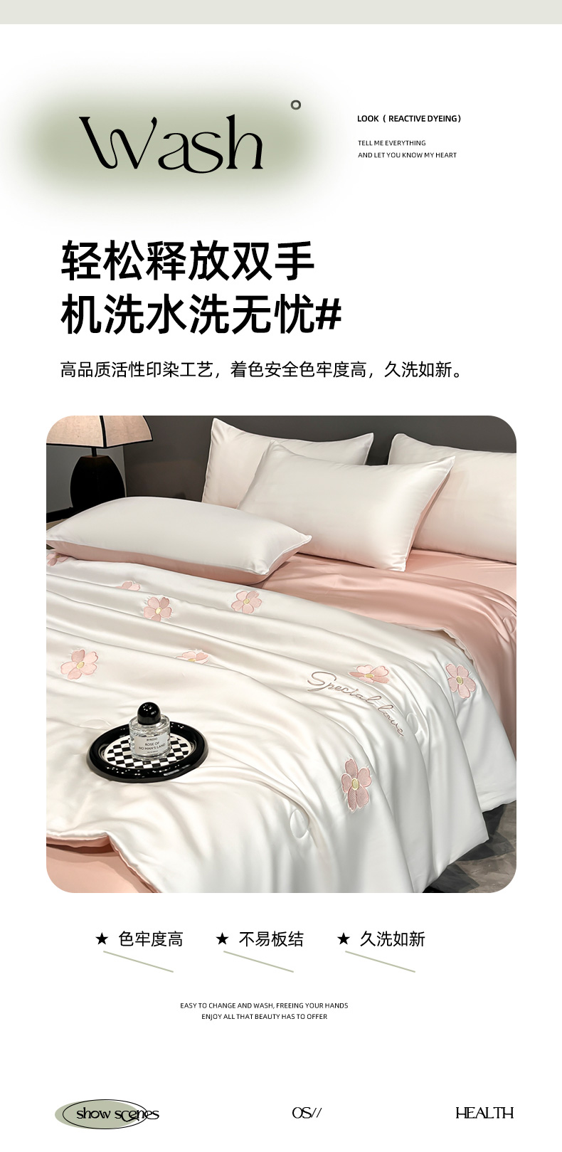 (总)满羽家纺 2025新款水洗冰丝刺绣夏被四件套,蝴蝶结绿,蝴蝶结 绿+白,蝴蝶结-奶白粉,花朵 粉+白,花朵-奶白粉,花朵绿,花朵奶白绿,皇冠 宾利兰,字母 宾利兰,字母 粉+灰,字母 兰+灰,字母 米+灰