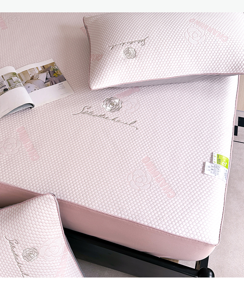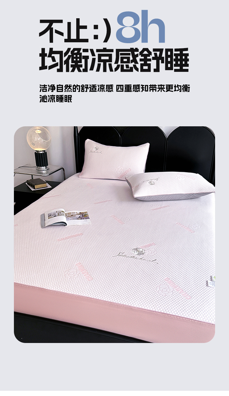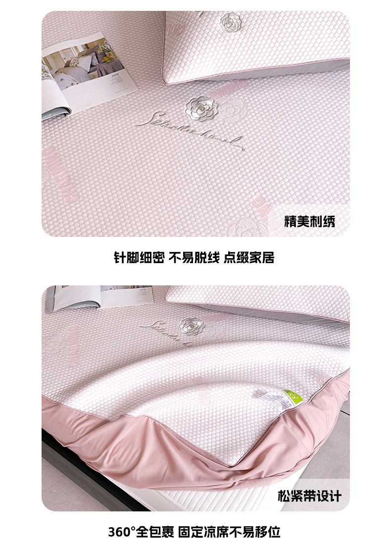 商品名称:网客家纺 2025新款凉豆豆凉感麻绳床笠款凉席 花朵款-贝壳粉