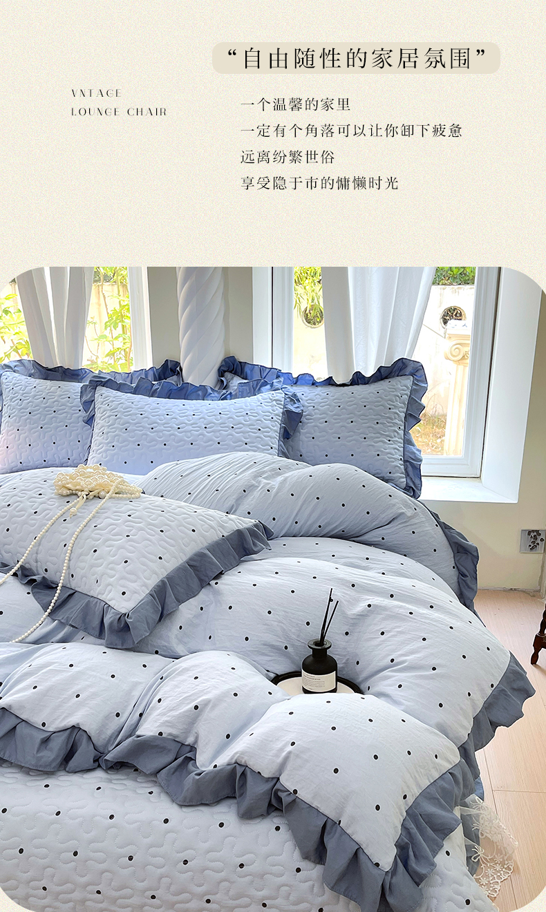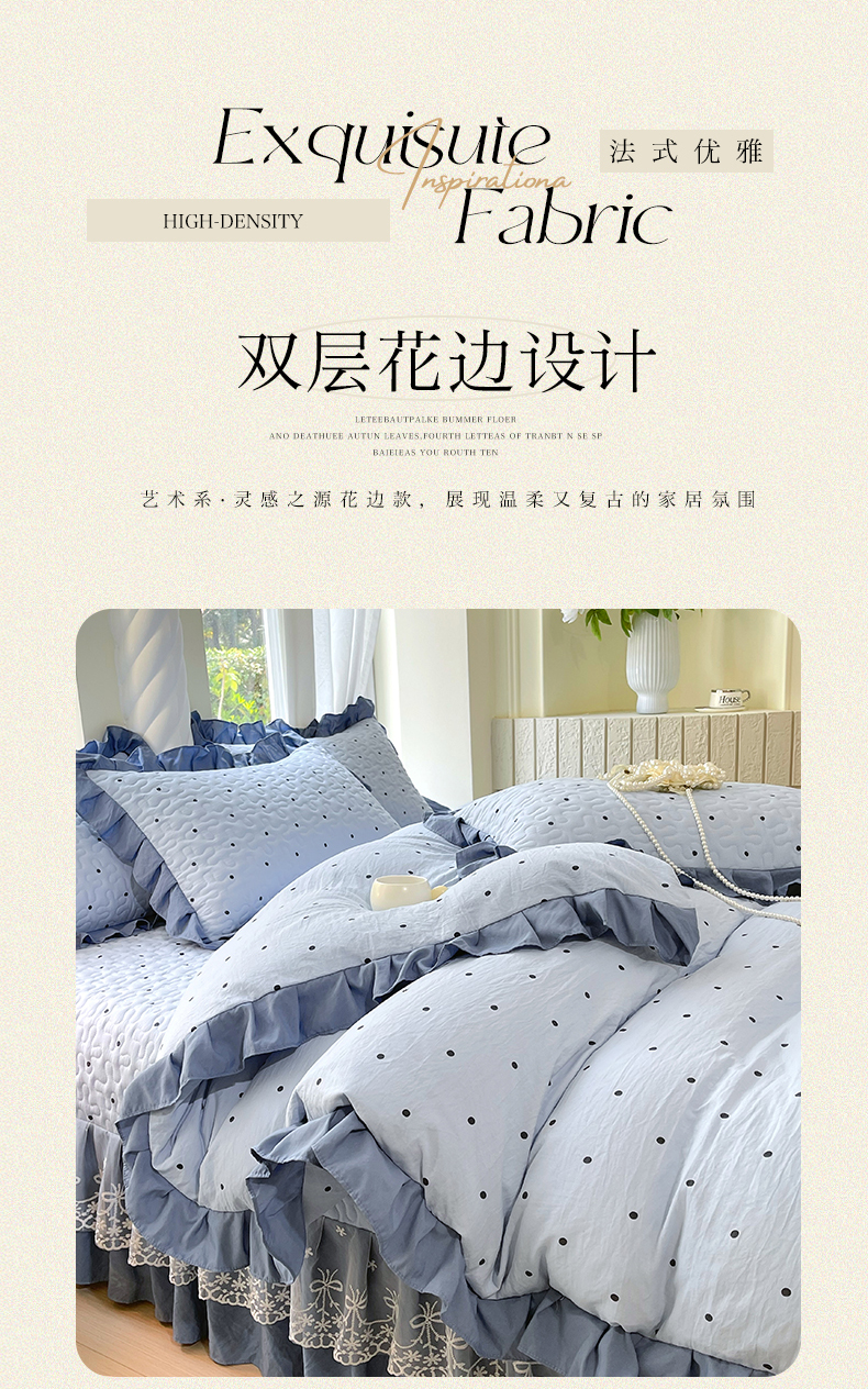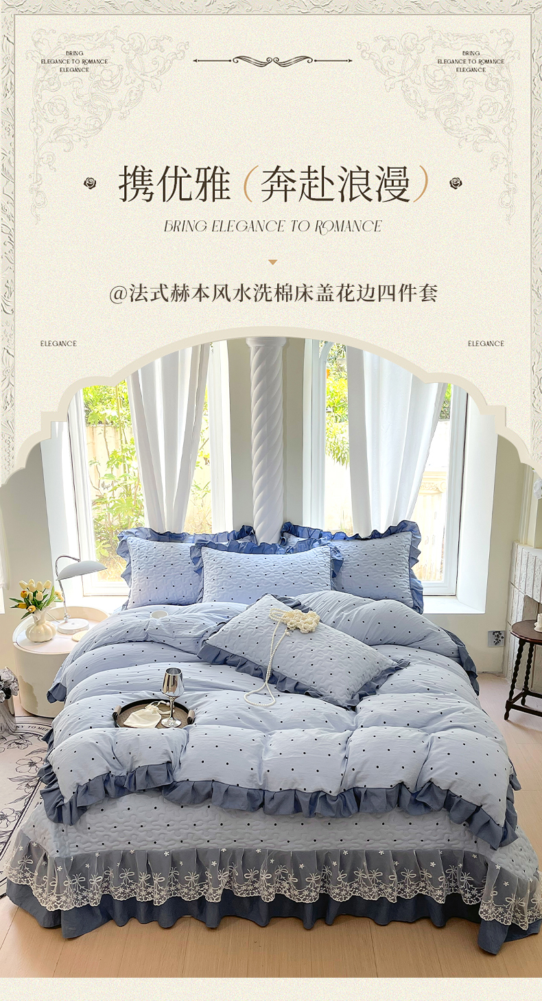 当前位置: 91家纺网 > 商品网购 > 床品套件 > 四件套 > 水洗棉四件套 > 雨彤家纺 2025年新款赫本风云朵水洗棉夹棉双层花边床盖四件套 芋艿波波-兰-赫本风