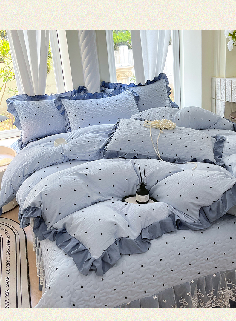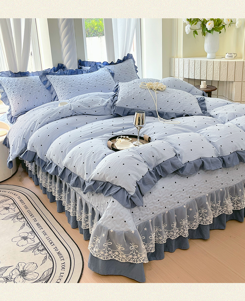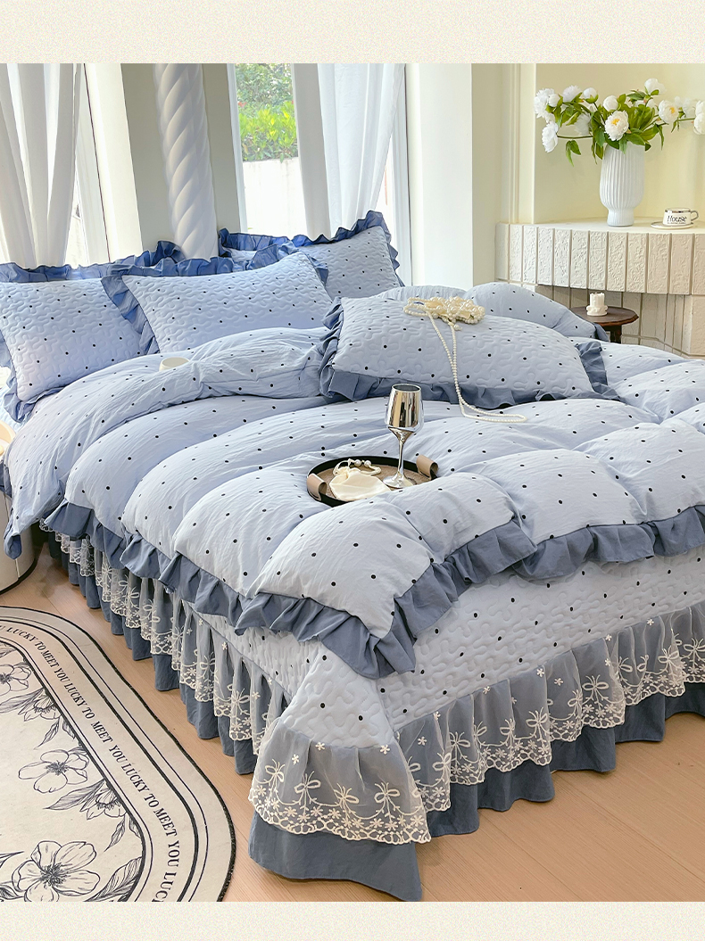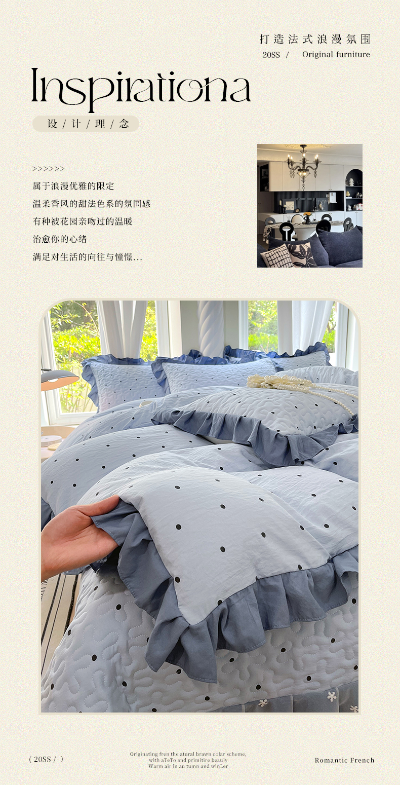 当前位置: 91家纺网 > 商品网购 > 床品套件 > 四件套 > 水洗棉四件套 > 雨彤家纺 2025年新款赫本风云朵水洗棉夹棉双层花边床盖四件套 芋艿波波-兰-赫本风