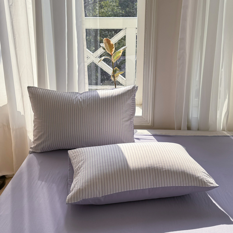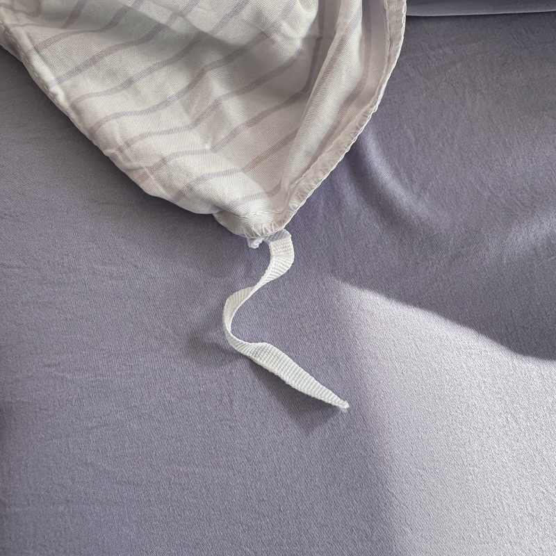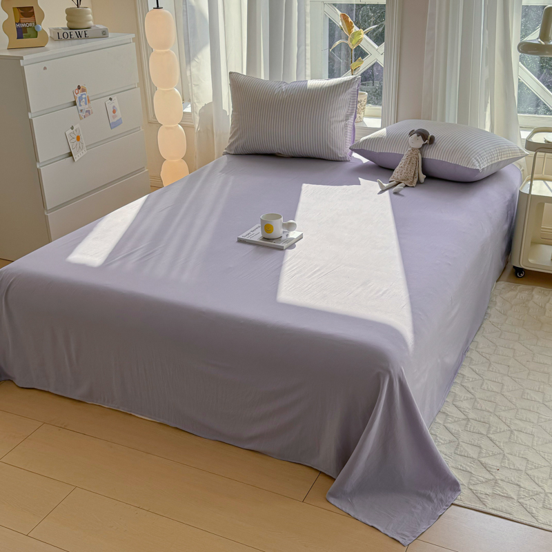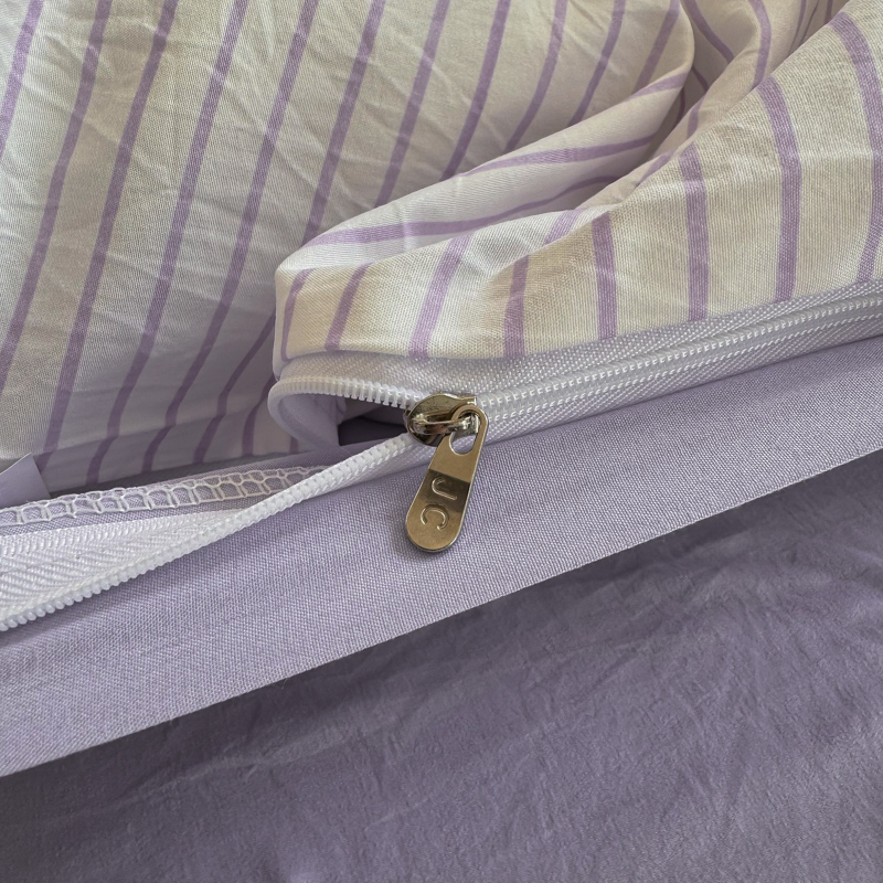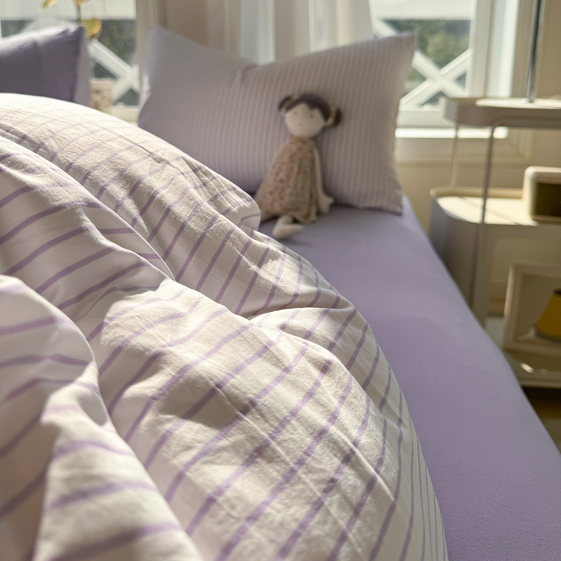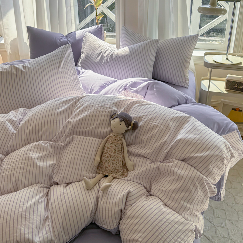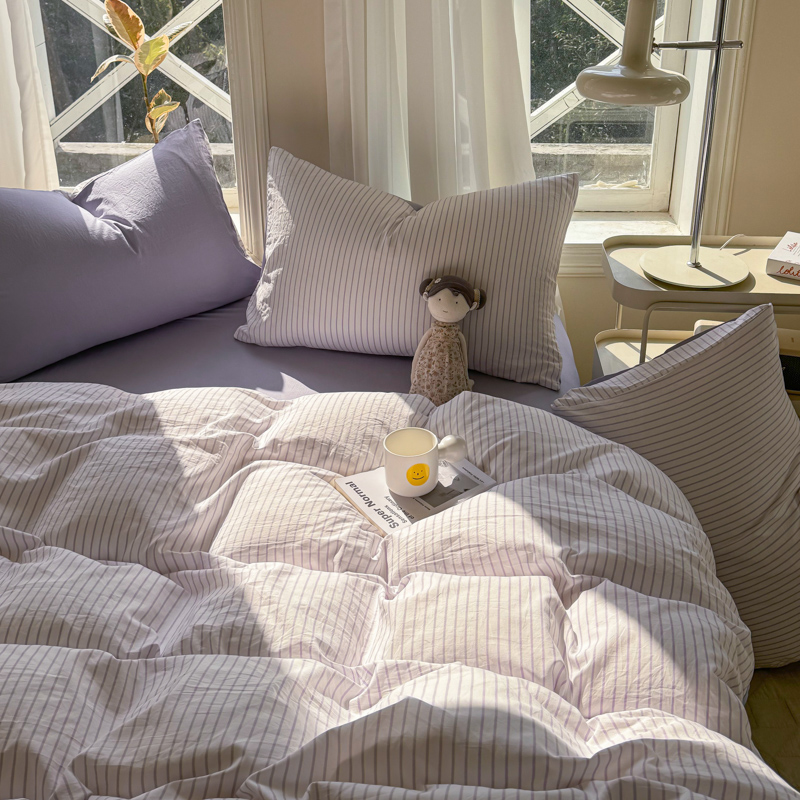 商品名称:缦绣阁家纺 2025新款无印风条纹水洗磨毛四件套简约风4件套学生宿舍三件套 良品条纹紫