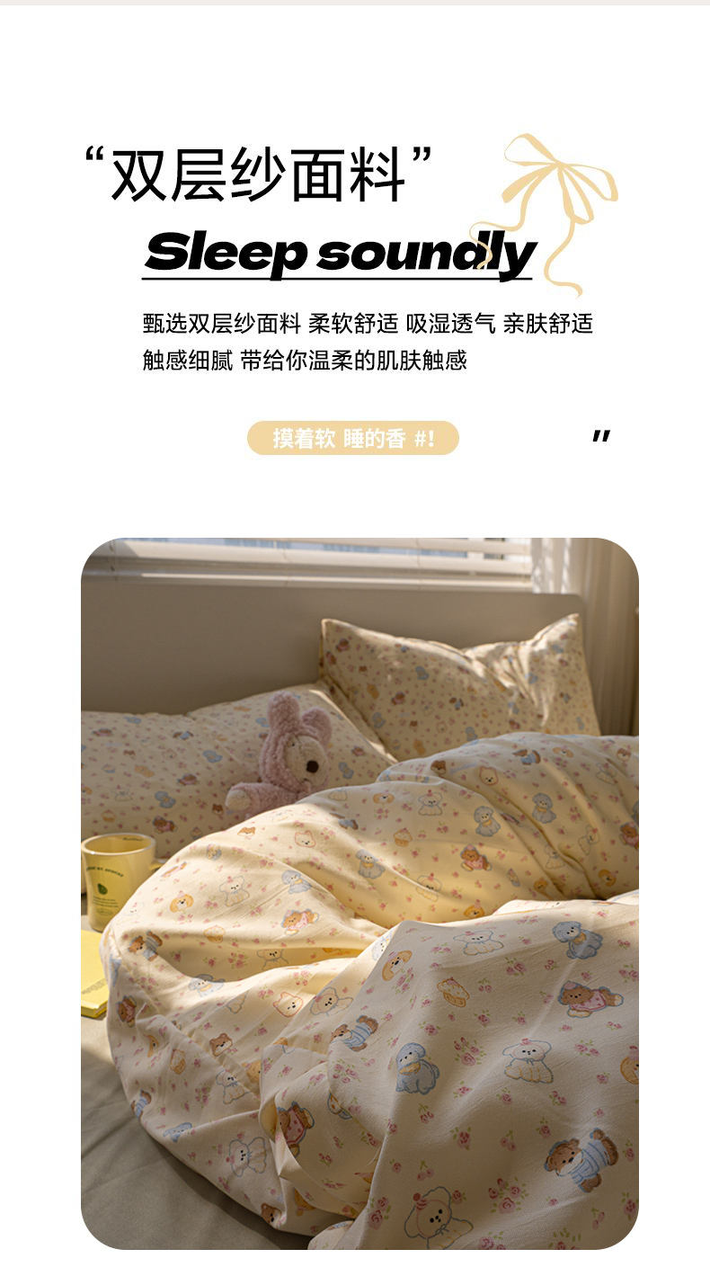(总)缦绣阁家纺 2025新款A类有氧针织棉印花四件套床单款床笠款四件套宿舍三件套,有氧双层纱-安琪拉兔,有氧双层纱-蝶缘颂,有氧双层纱-蝴蝶结,有氧双层纱-花技语,有氧双层纱-花绮,有氧双层纱-奶油波点,有氧双层纱-软萌萌,有氧双层纱-甜心,有氧双层纱-伊莲娜,有氧双层纱-樱桃点灰