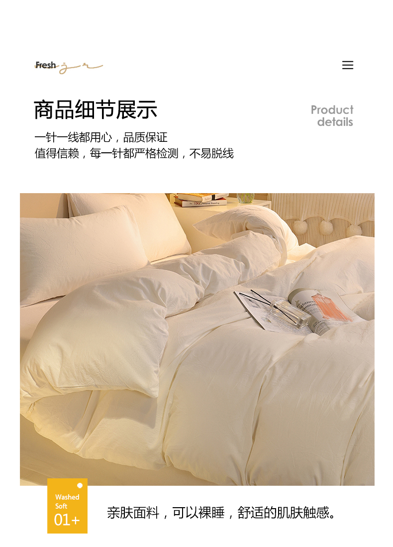 商品名称:(总)缦绣阁家纺 2025新款亲肤水洗棉纯色双拼四件套简约风床单款床笠款四件套宿舍三件套