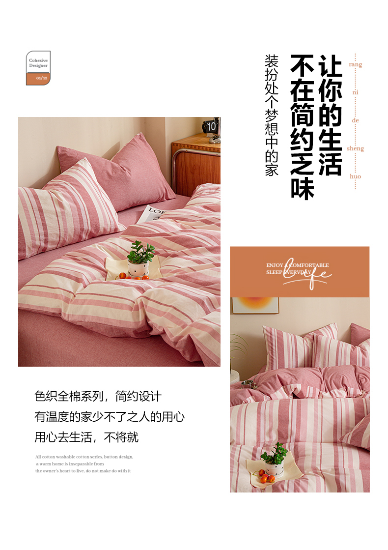 商品名称:优米家纺 2025新款色织全棉纯棉40支水洗四件套系列-单床单 麦田粉