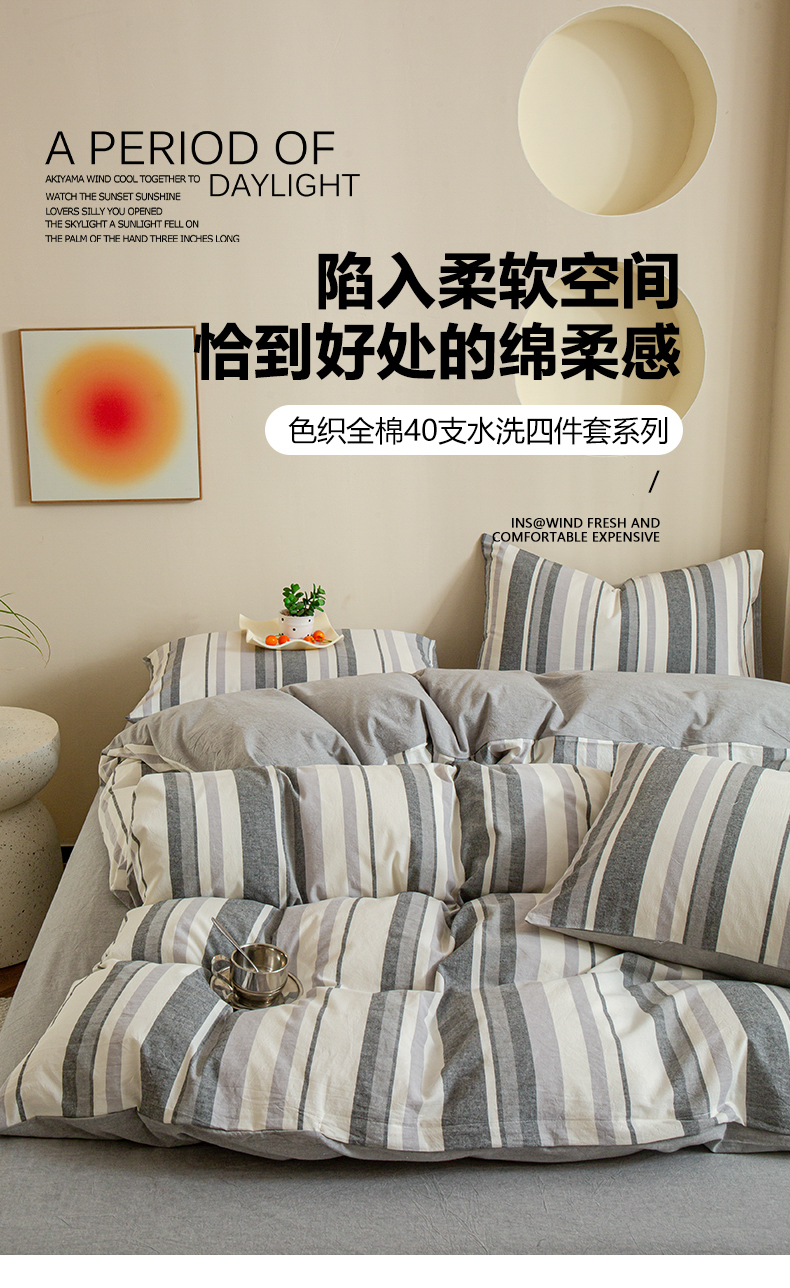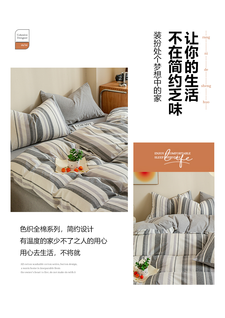 商品名称:优米家纺 2025新款色织全棉纯棉40支水洗四件套系列-单床单 西西里灰