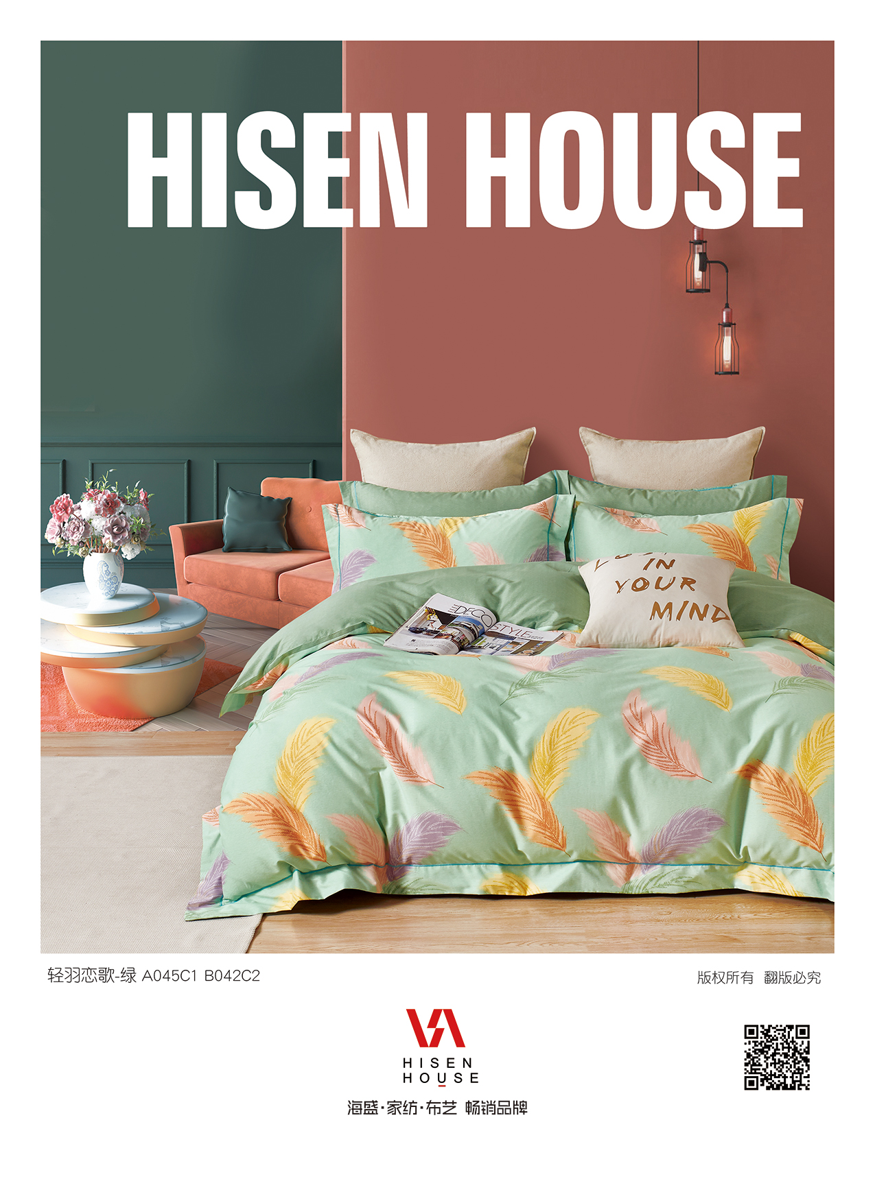 海盛 2025新款套件面料全棉13376印花系列 轻羽恋歌-绿