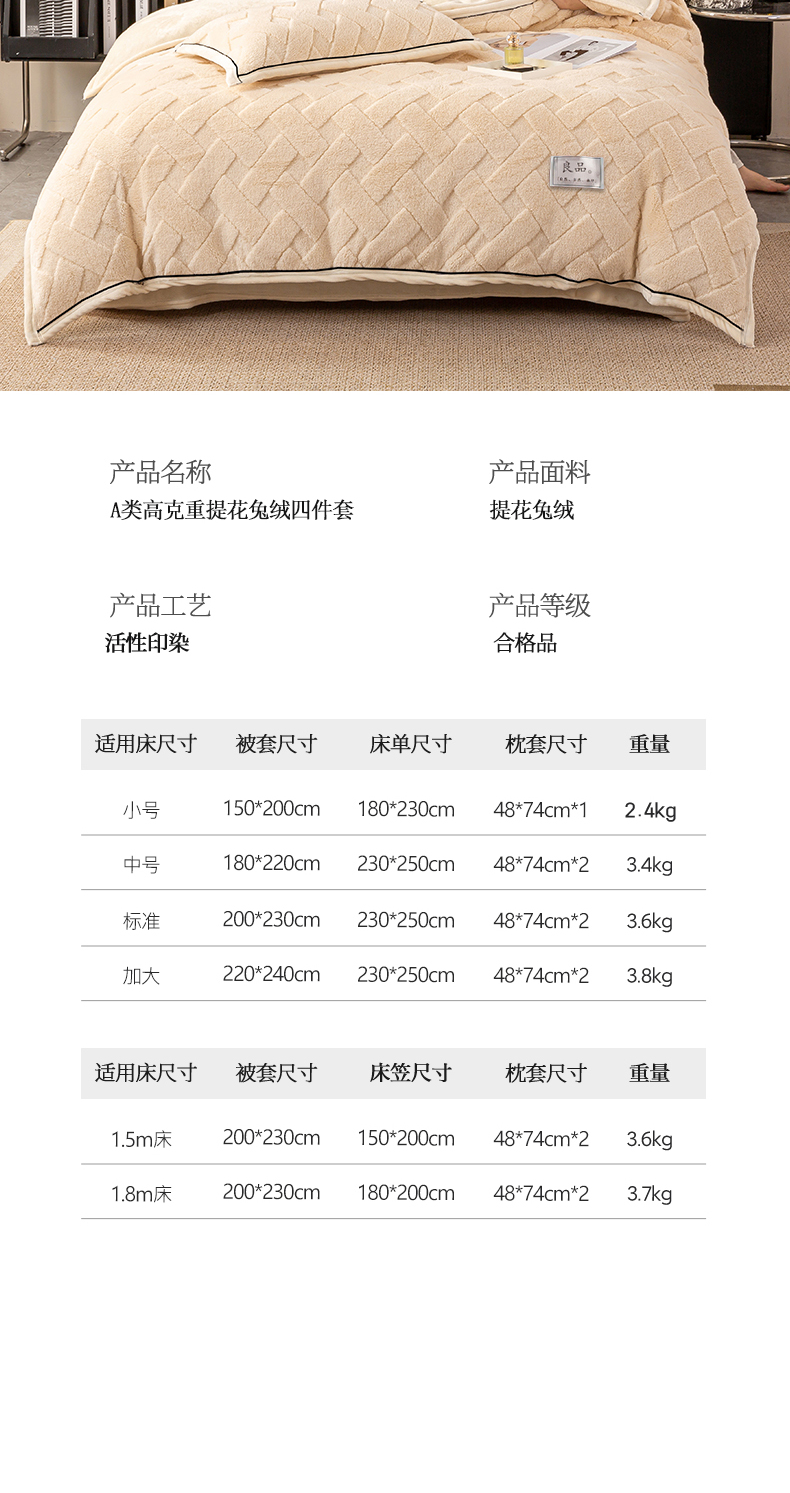 商品名称:(总)耐思家纺 2024新款加厚提花兔绒四件套