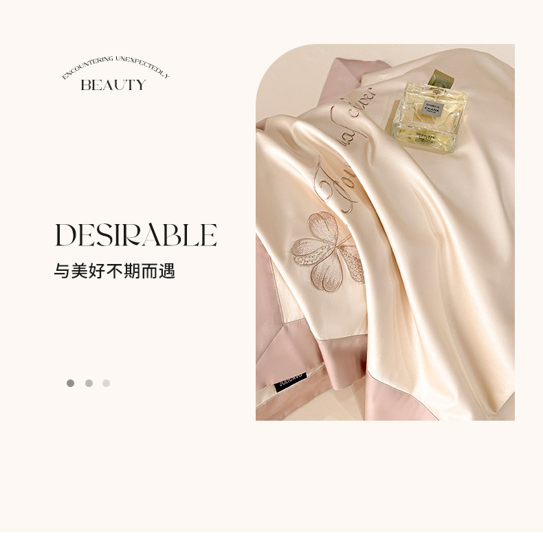 商品名称:【直播爆款】A类全棉四件套纯棉轻奢重工刺绣床单床笠夏季床单床笠床上用品 绮梦-白桃