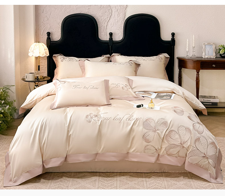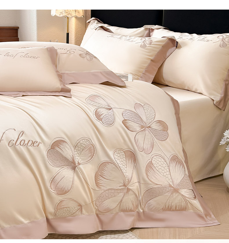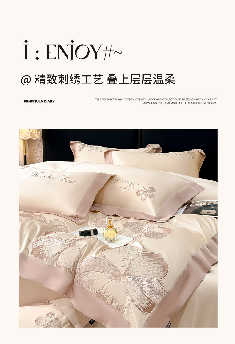 【直播爆款】A类全棉四件套纯棉轻奢重工刺绣床单床笠夏季床单床笠床上用品 绮梦-白桃