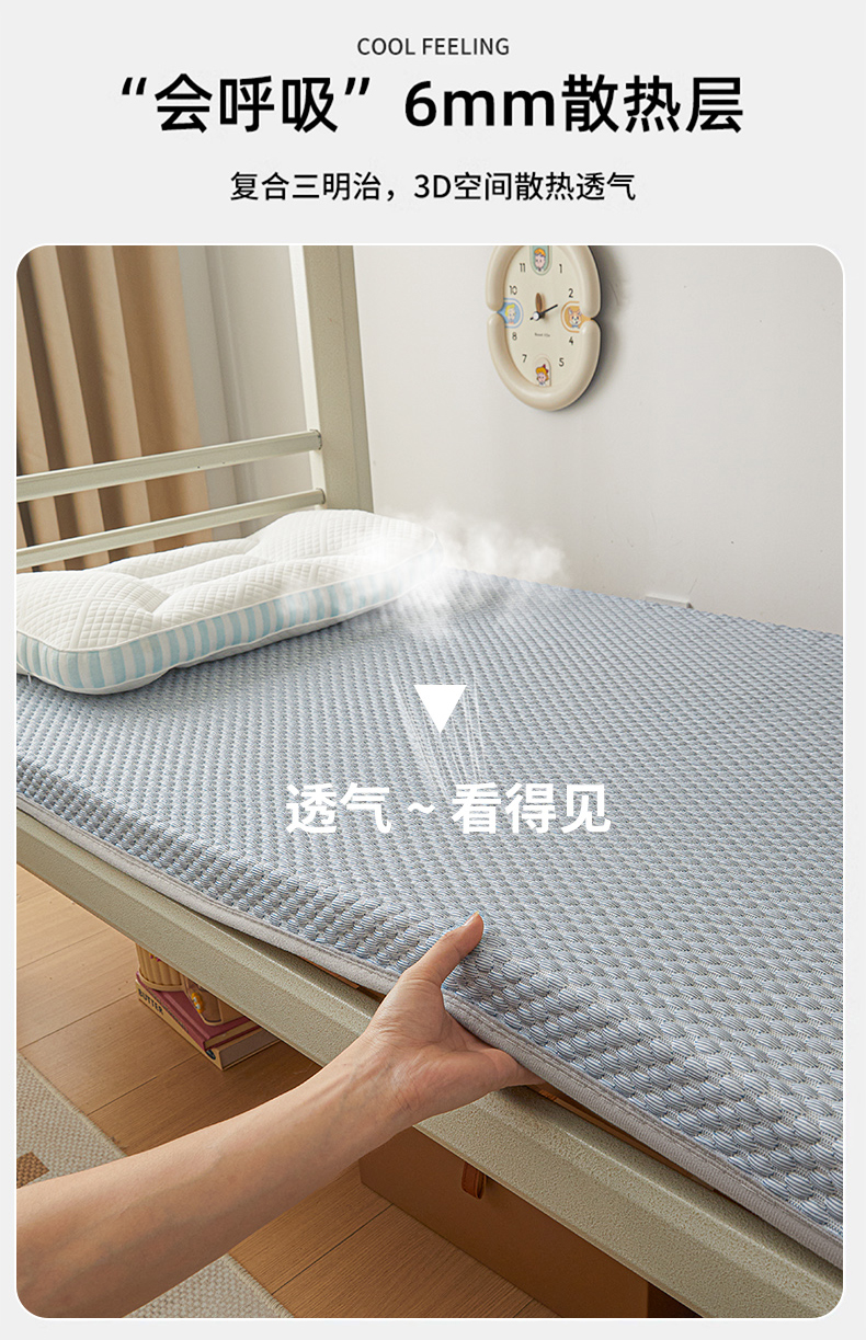 (总)暖季家纺 暖季家纺 2025新款立体三菱格海绵学生床垫,立体海绵灰-三棱格白,立体海绵蓝-三棱格白