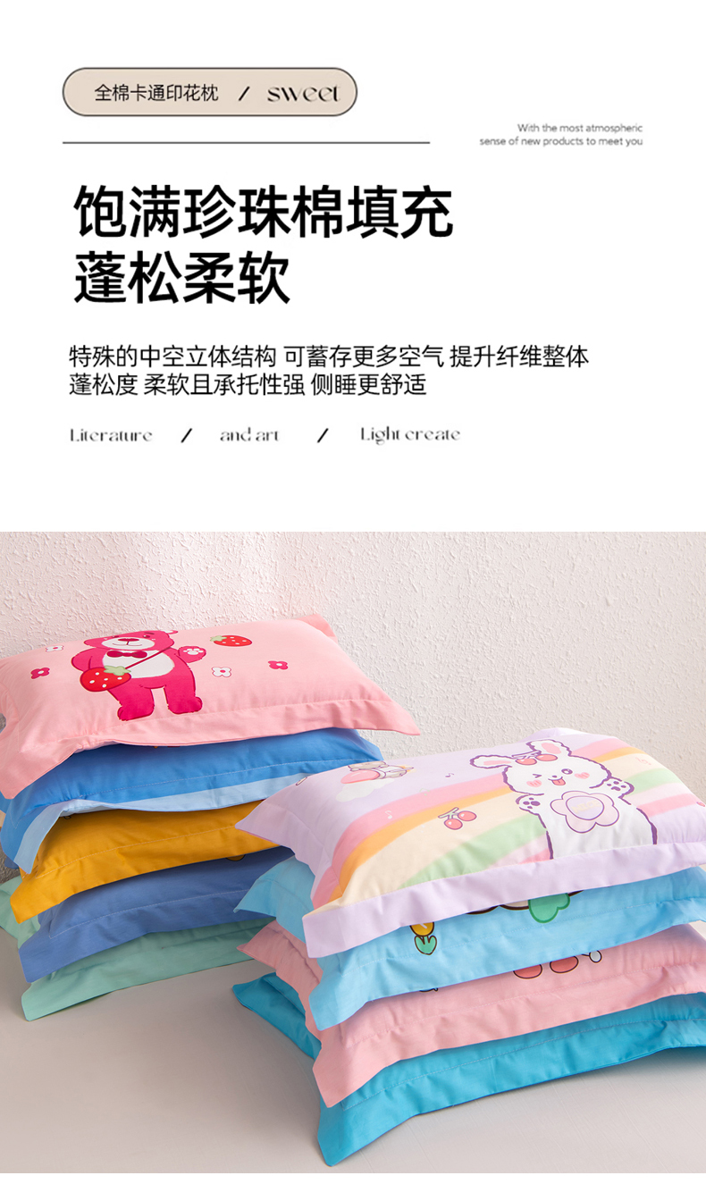 大熊枕芯 2025新款全棉纯棉卡通儿童印花枕枕套可拆卸枕芯枕头 吉他恐龙