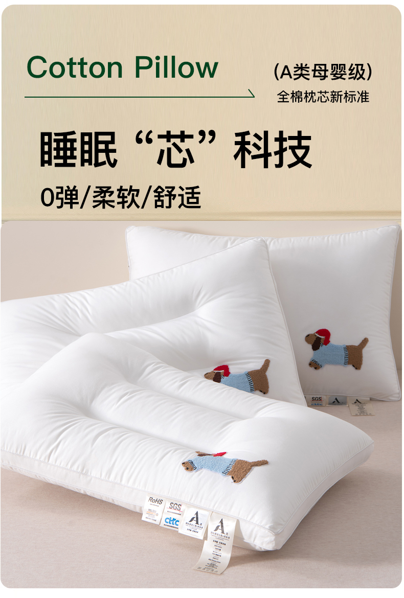 当前位置: 91家纺网 > 商品网购 > 枕头/枕芯/保健枕/颈椎枕 > 大熊枕芯 2025新款全棉纯棉毛巾绣枕芯枕头 萌趣狗-高枕 48x74cm/对