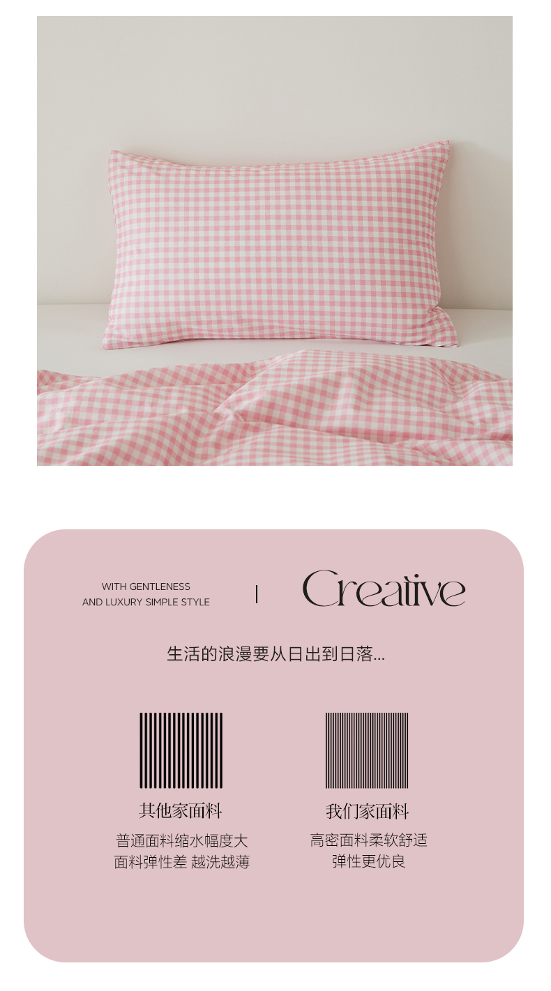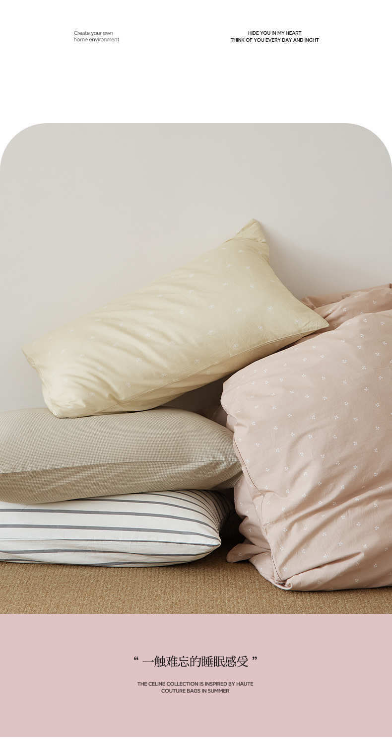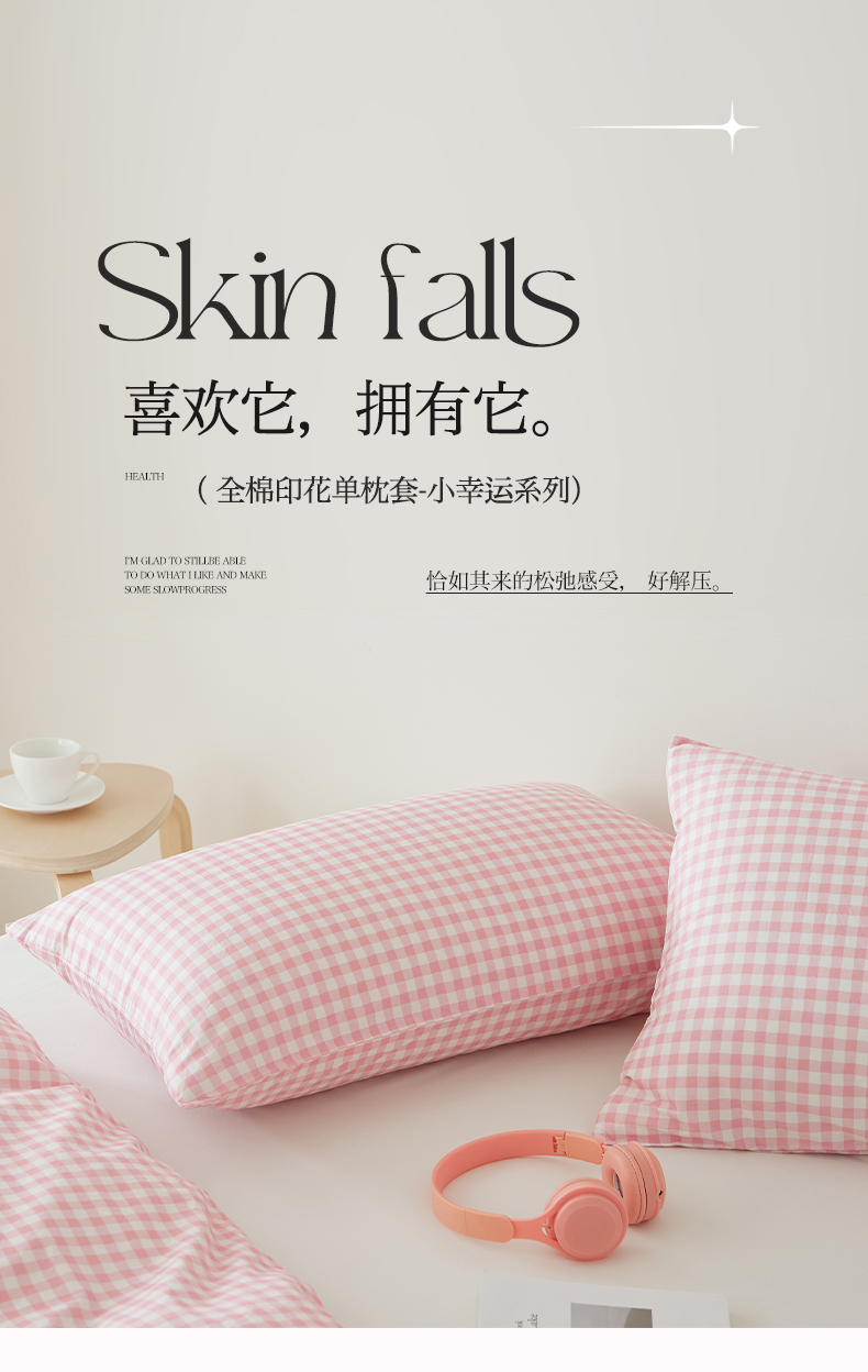 商品名称:EH家居 2025春夏新款40s全棉纯棉印花枕套单件 单枕套-小幸运 维希粉格