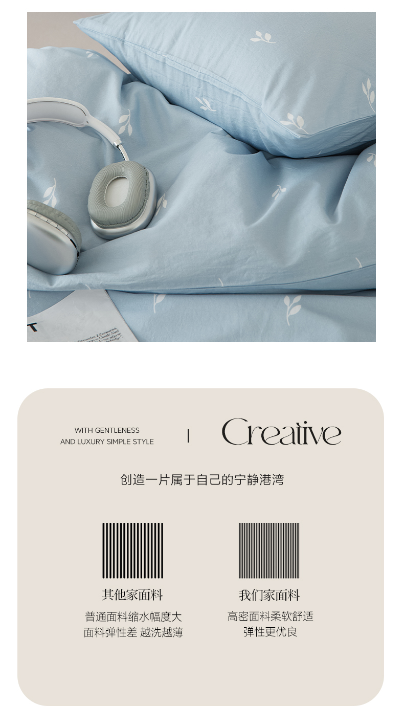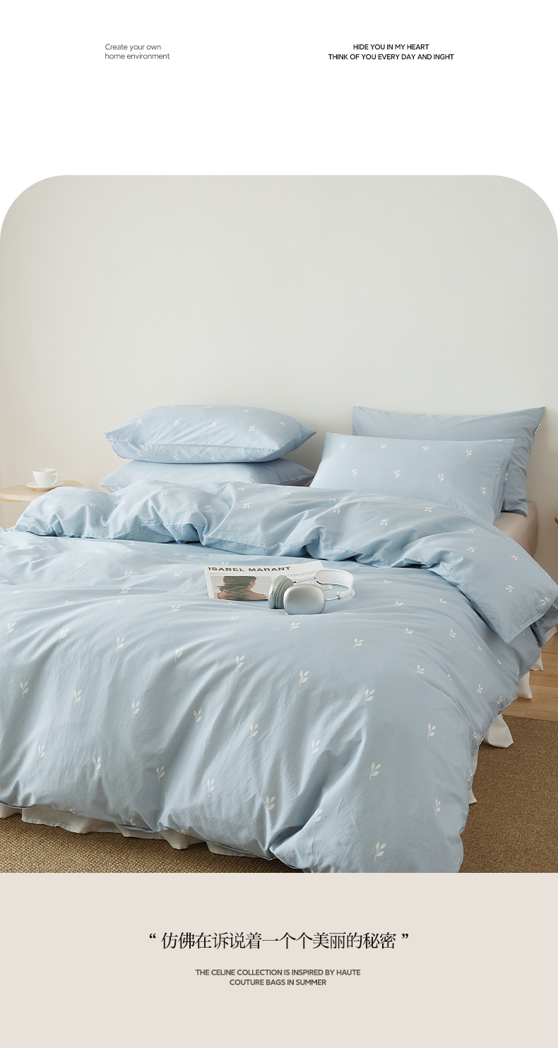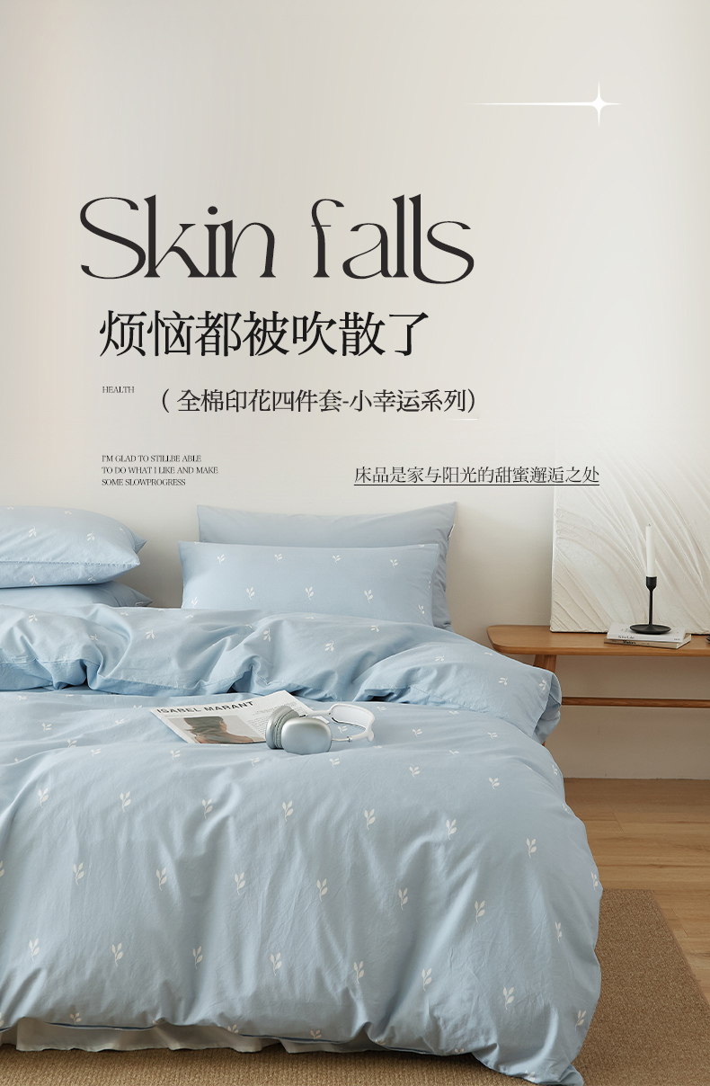 当前位置: 91家纺网 > 商品网购 > 床品套件 > 四件套 > 全棉普通四件套 > EH家居 2025春夏新款40s全棉纯棉印花四件套-小幸运 蓝色情人草