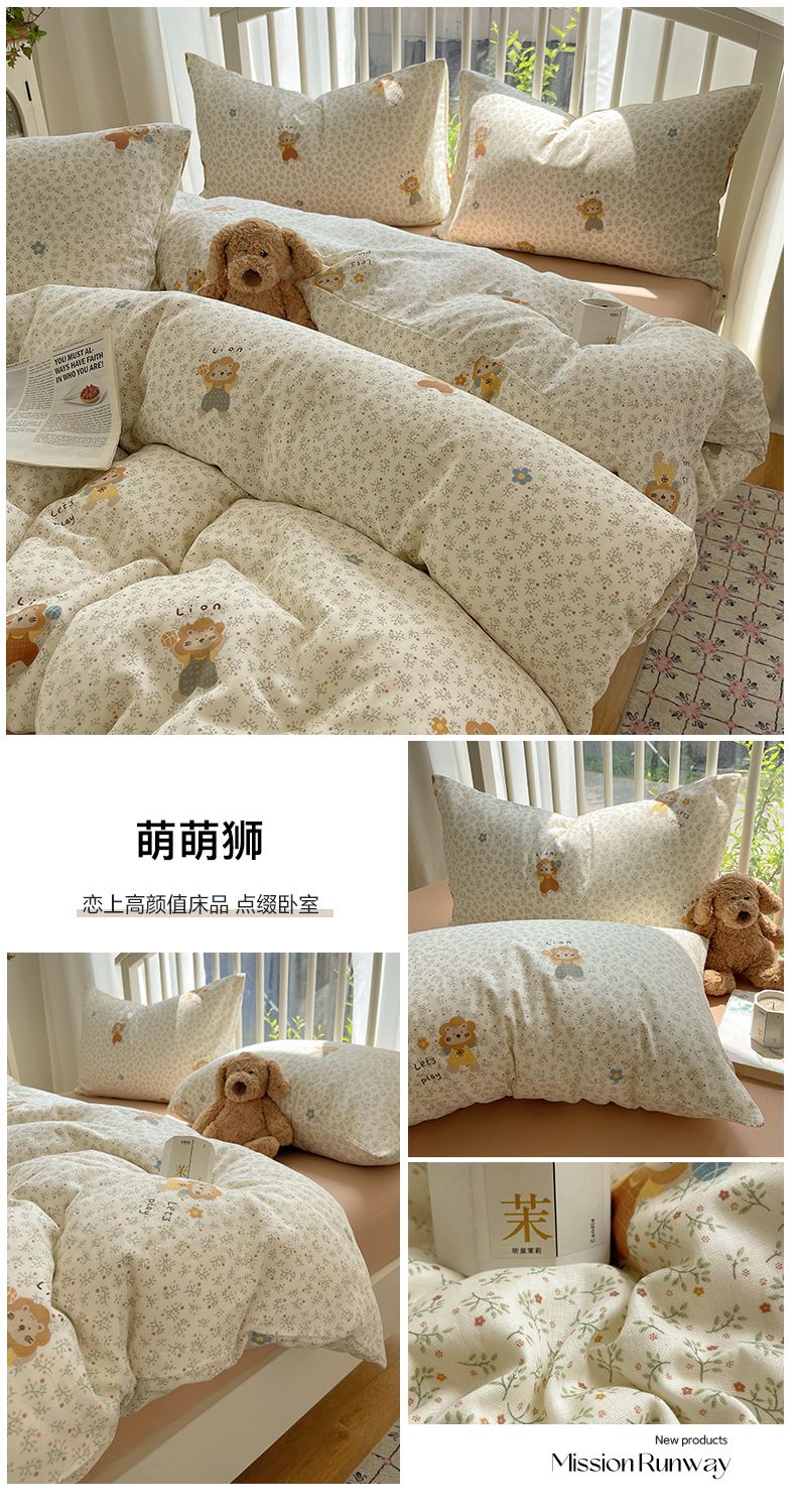 当前位置: 91家纺网 > 商品网购 > 床品套件 > 四件套 > 双层纱四件套 > XIWEN-希文家纺 2025新款A类全棉纯棉有氧双层纱四件套 萌萌狮