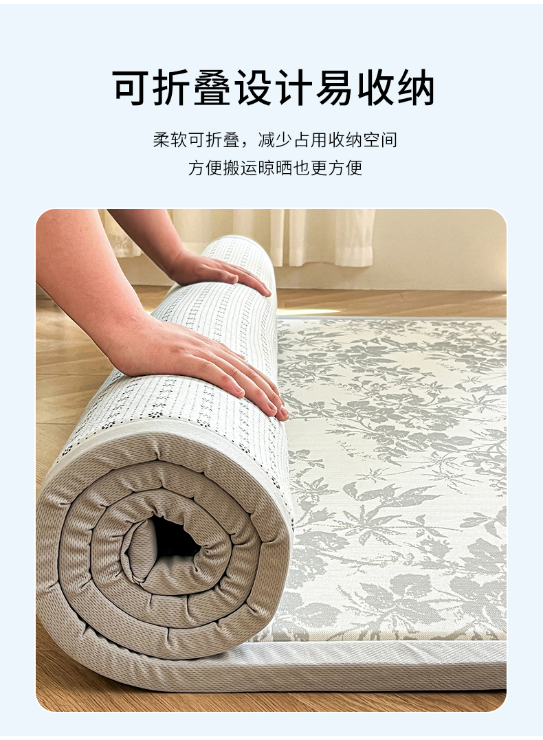 宜代光年 2025新款冷凝丝提花凉席多功能地垫 凉感繁花床垫-灰