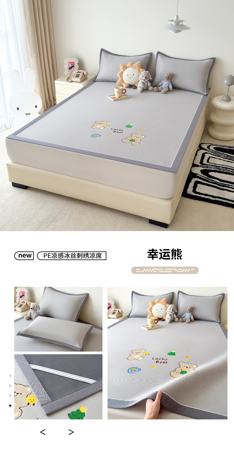 商品名称:九花鹿 2025新款凉感PE卡通冰丝席-凉席款 幸运熊