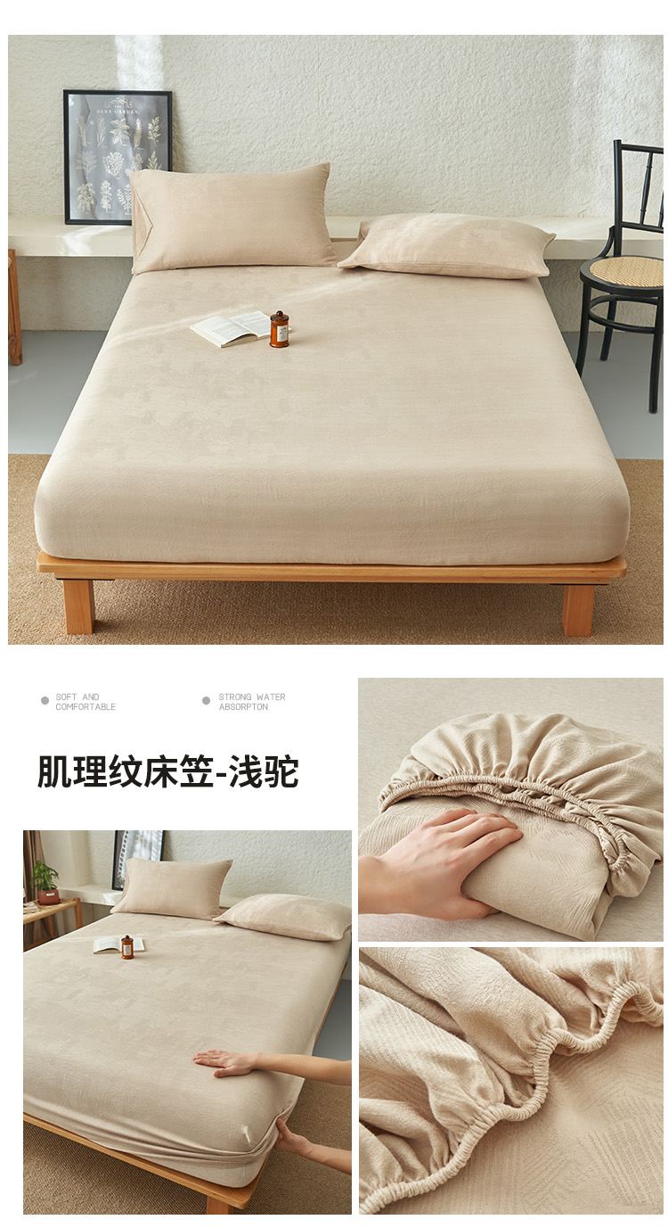 • 91家纺网 家纺一手货源 找家纺 早晨家纺 2025新款肌理纹纯棉提花床笠 肌理纹床笠-浅驼