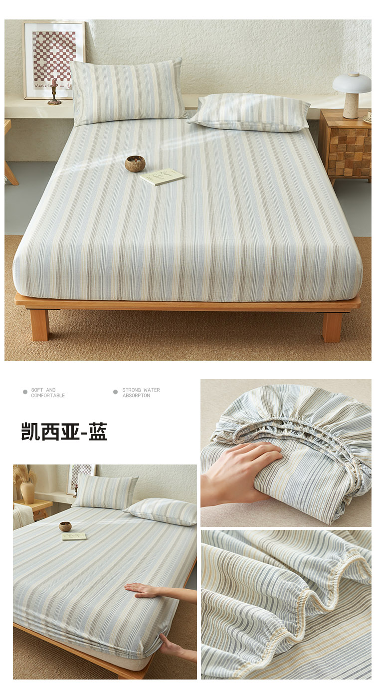 早晨家纺 2025新款色织纯棉水洗棉床笠 凯西亚-蓝