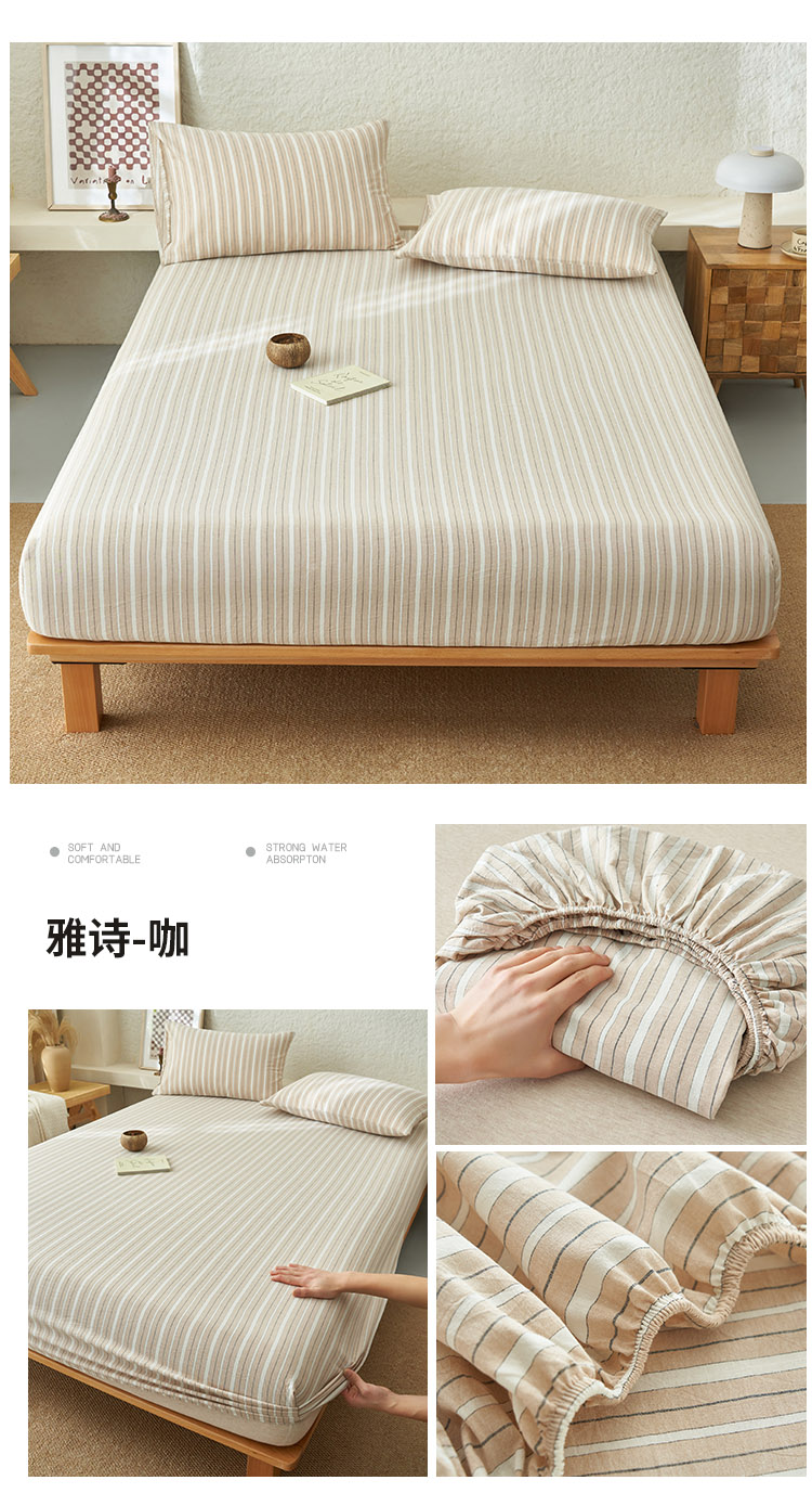 早晨家纺 2025新款色织纯棉水洗棉床笠 雅诗-咖