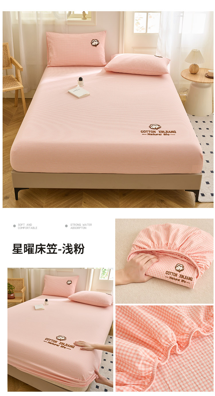 早晨家纺 2025新款色织纯棉水洗棉毛巾绣床笠 星曜床笠-浅粉