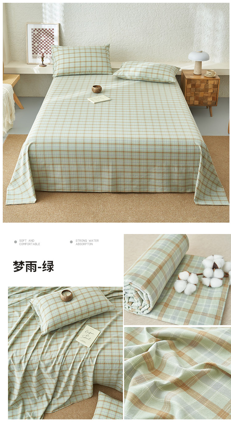 早晨家纺 2025新款色织纯棉水洗棉床单 梦雨-绿