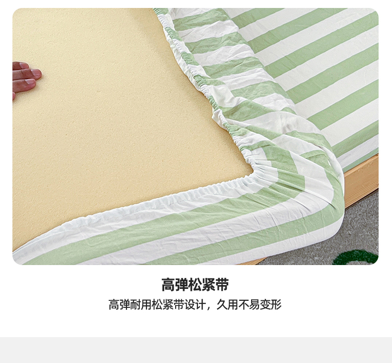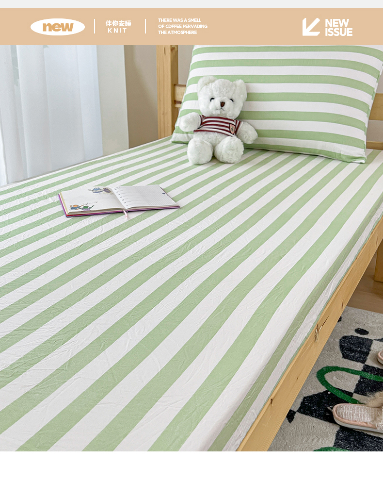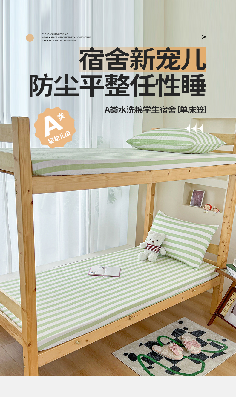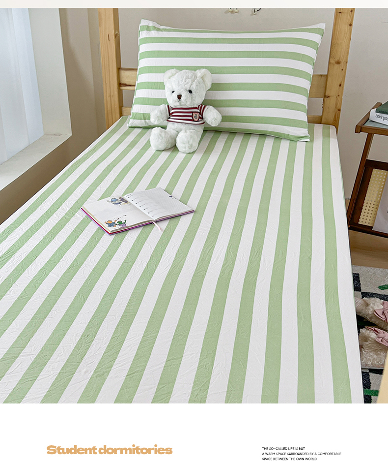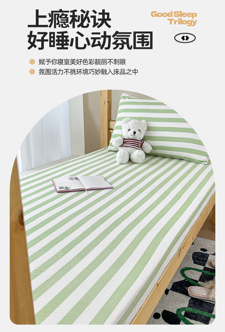 多品家纺 2025春夏新款超柔水洗棉学生宿舍床笠 松绿条