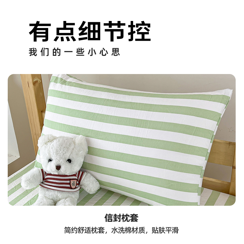 • 91家纺网 家纺一手货源 找家纺 多品家纺 2025春夏新款超柔水洗棉学生宿舍床笠 松绿条