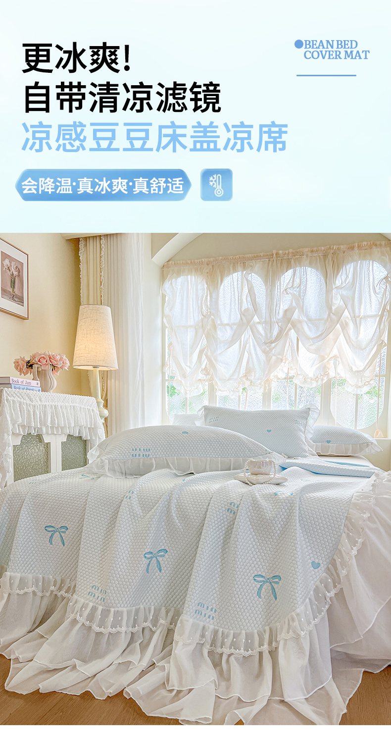 商品名称:网红馆(ck家纺) 2025新款床盖款豆豆凉感席凉席席子-甜心蝴蝶 甜心蝴蝶-天蓝