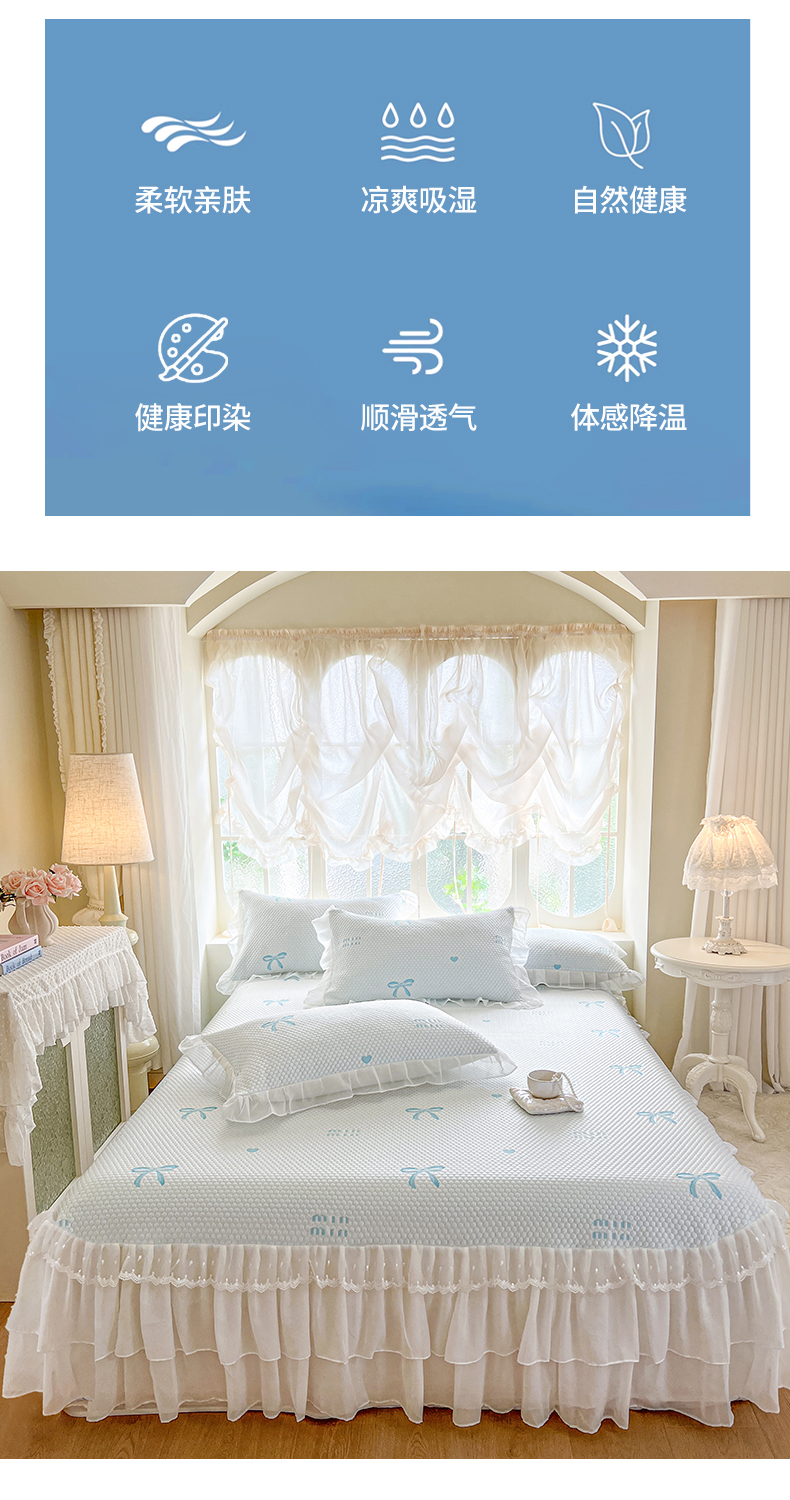 (总)网红馆(ck家纺) 2025新款色织提花牛奶绒床裙四件套-洛丽塔系列,洛丽塔-豆沙,洛丽塔-蓝色,洛丽塔-米色