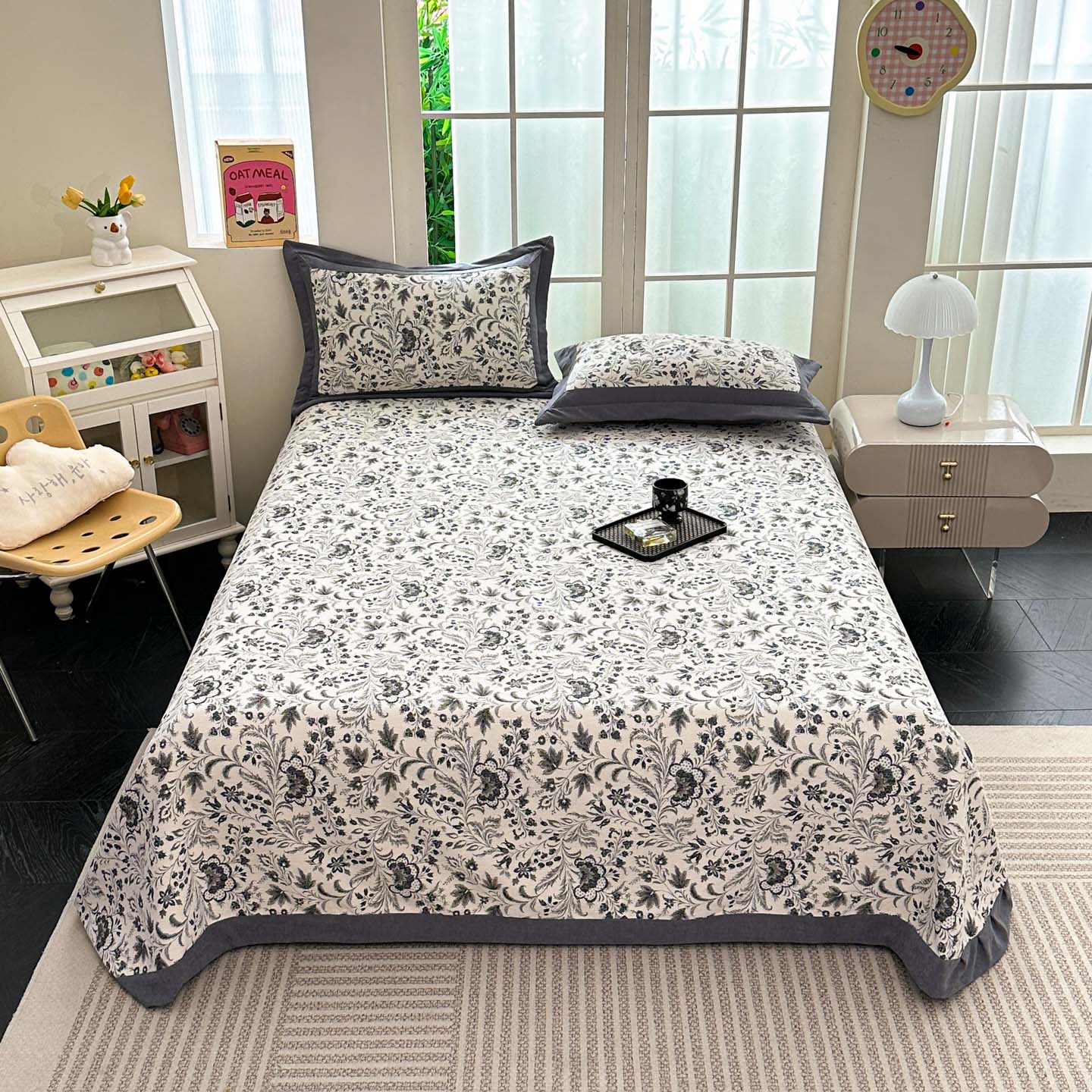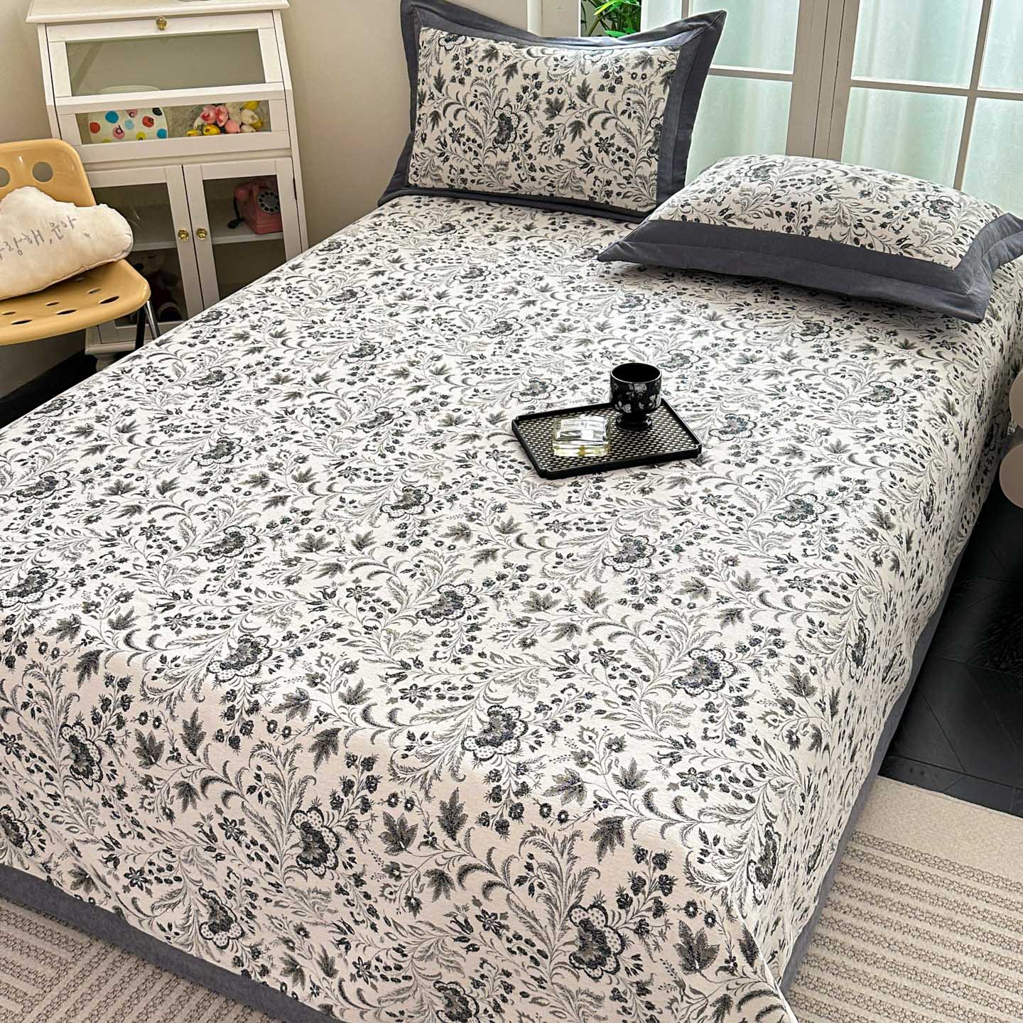 (总)紫碧螺 2023新款水洗棉麻韩版印花绗缝双面床裙,床裙-黄,床裙-灰,床裙-蓝,床裙-白,床裙-粉,床裙-绿,床裙-紫,繁花,花锦,莓果,南瓜,小猫咪
