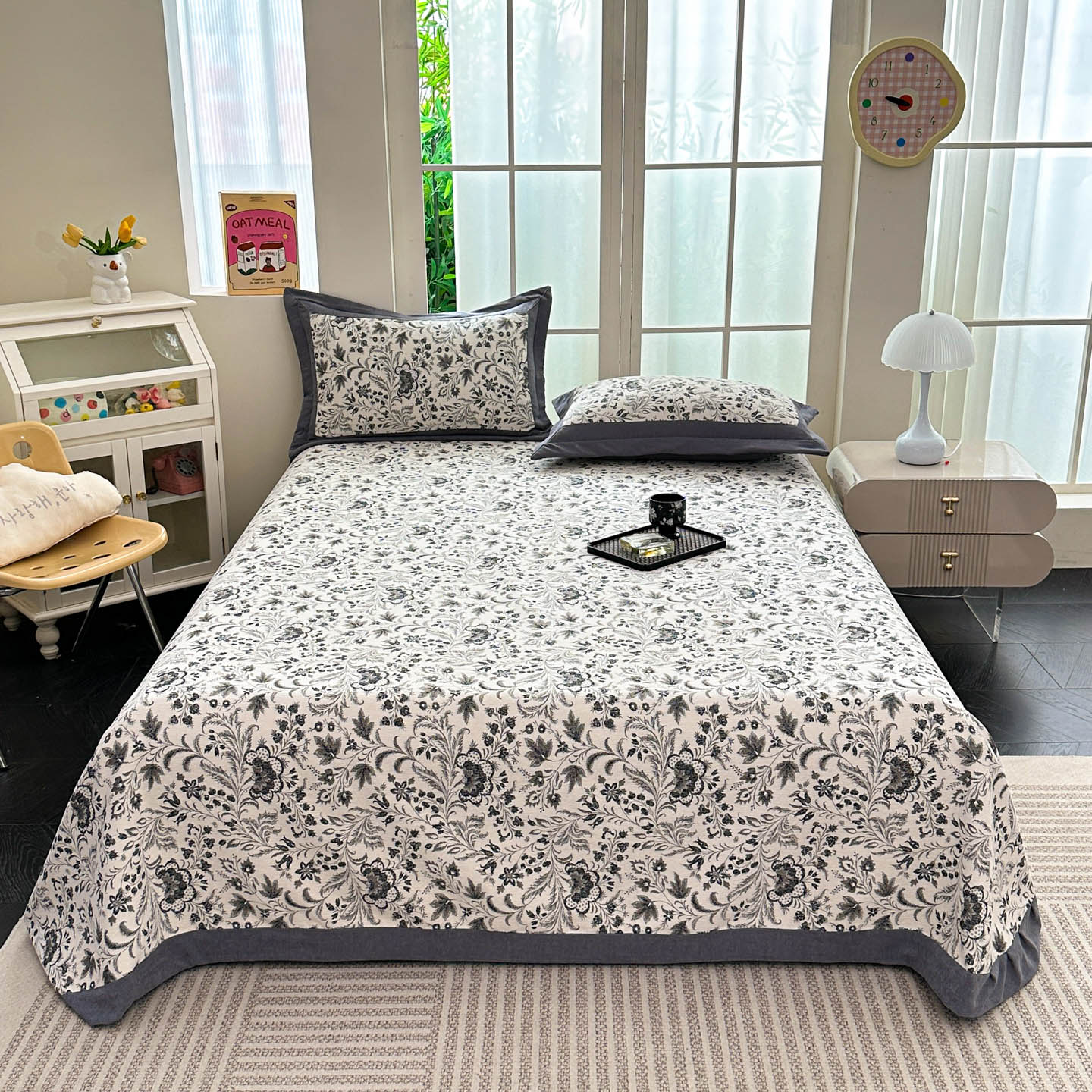 (总)紫碧螺家纺 2025新款牛奶绒绗绣裙式床盖三件套,暖黄,银灰,绿色,粉色,奶白,浅紫