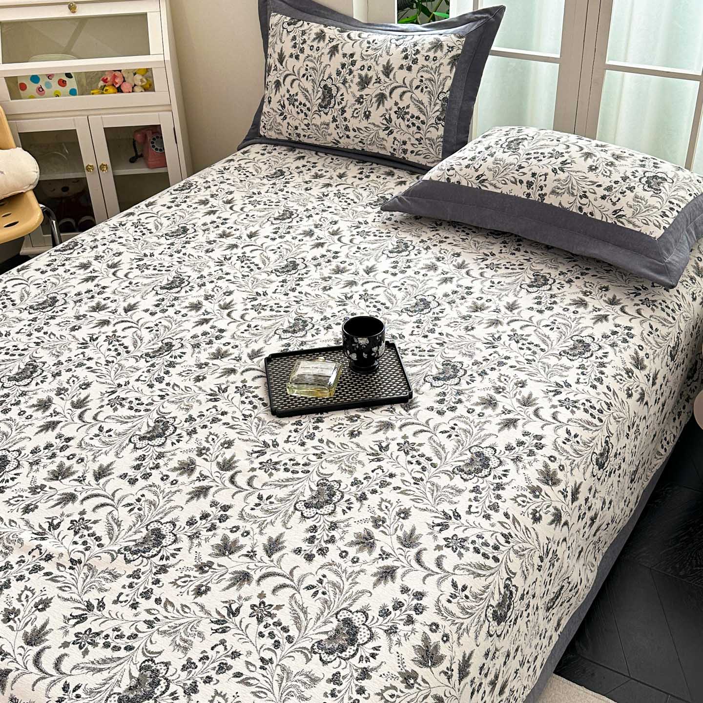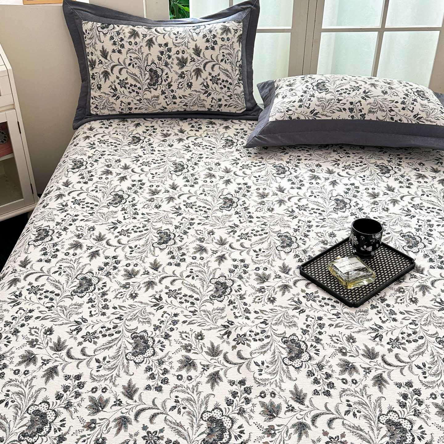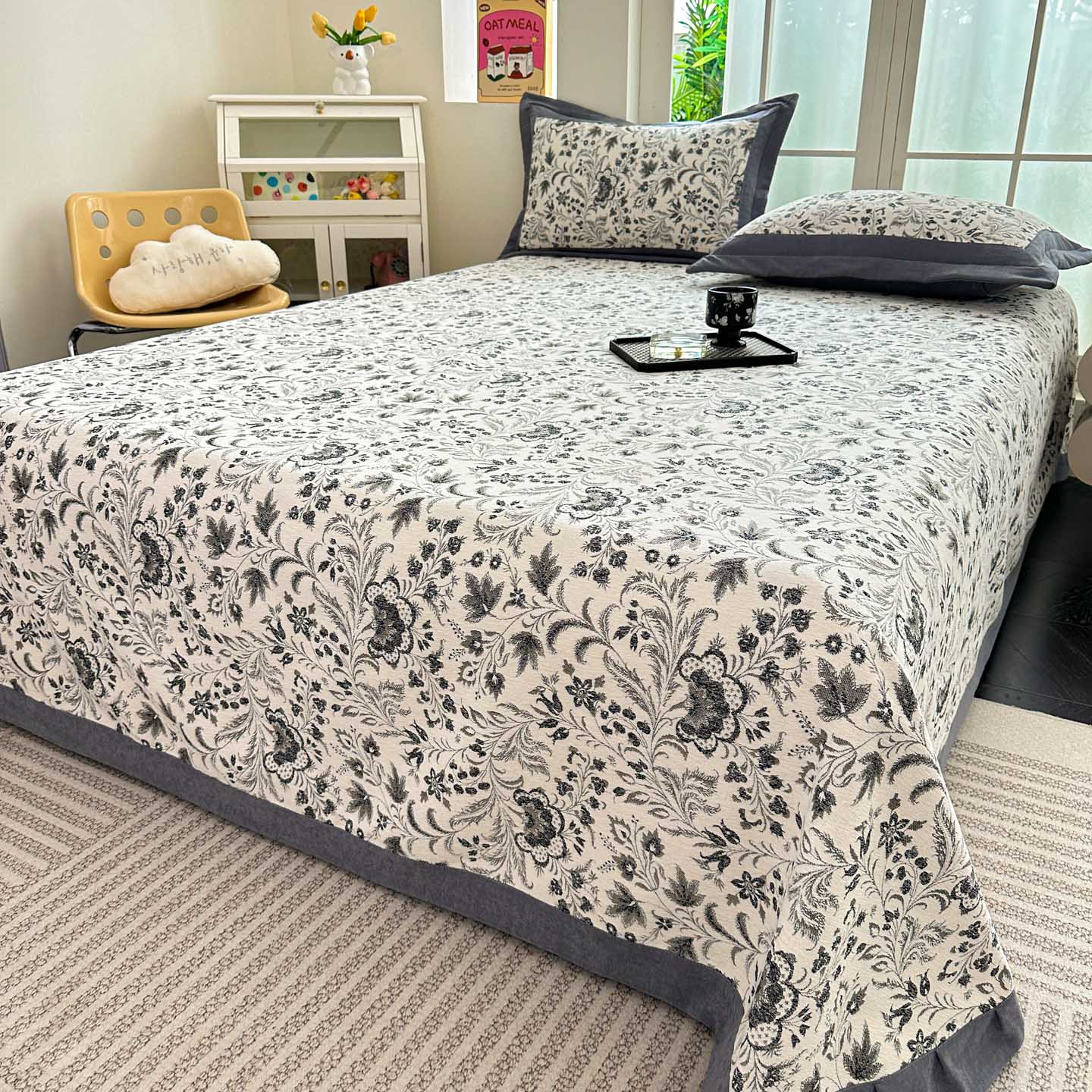 商品名称:紫碧螺家纺 2025新款雪尼尔欧式拼色床盖三件套 春漾拼奶灰
