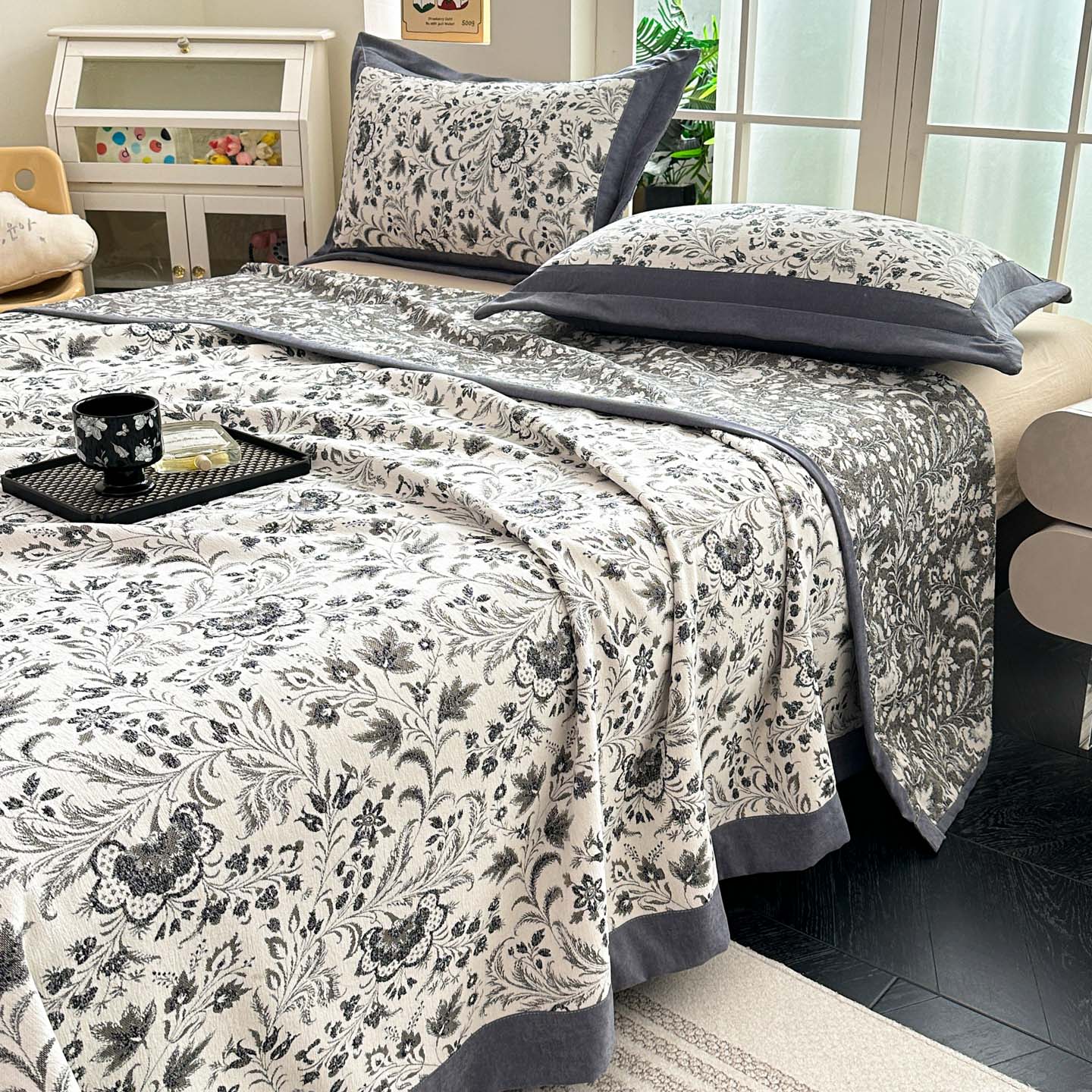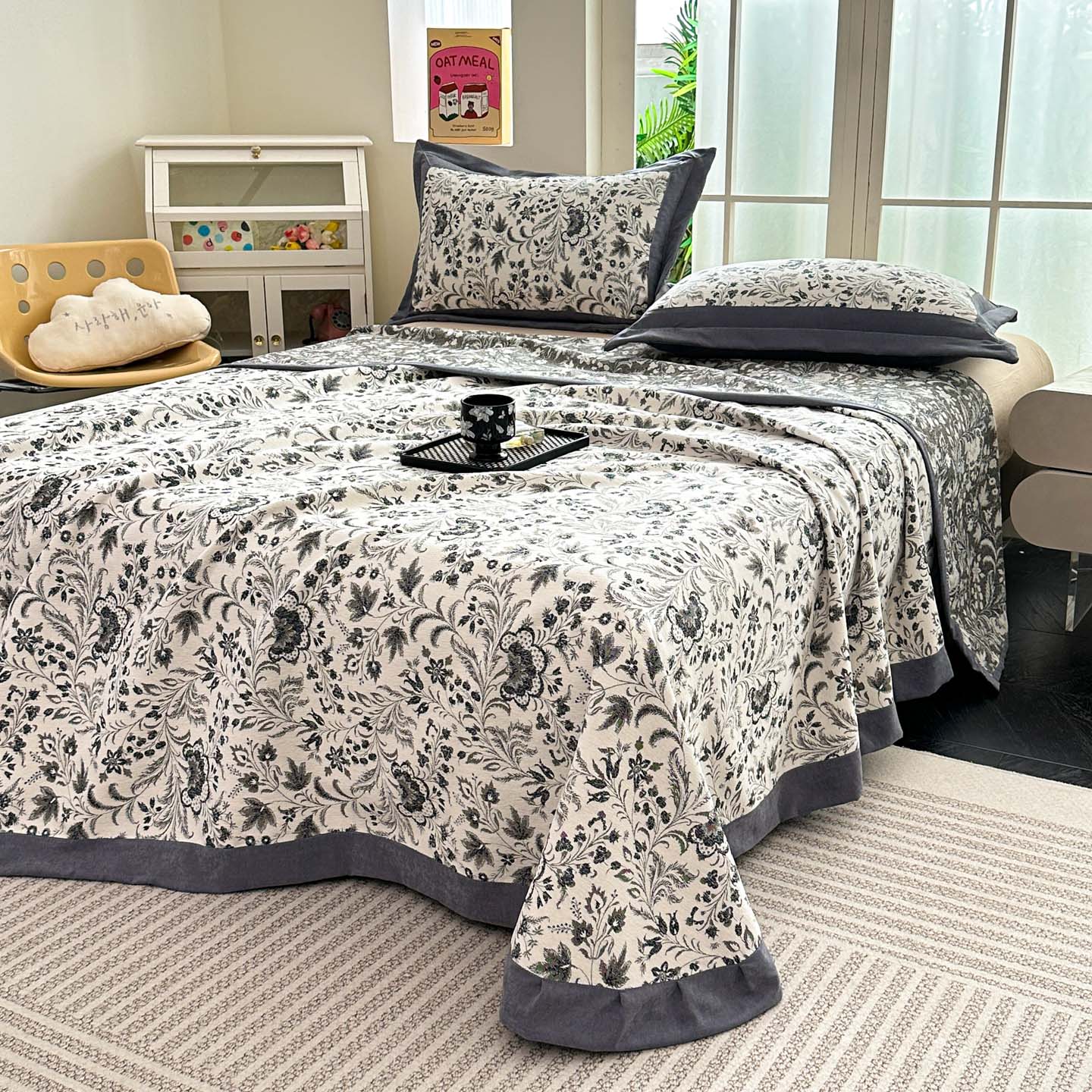 (总)紫碧螺2025新款多层纱夏被床盖四件套,淡蓝,浅灰,浅绿,浅驼