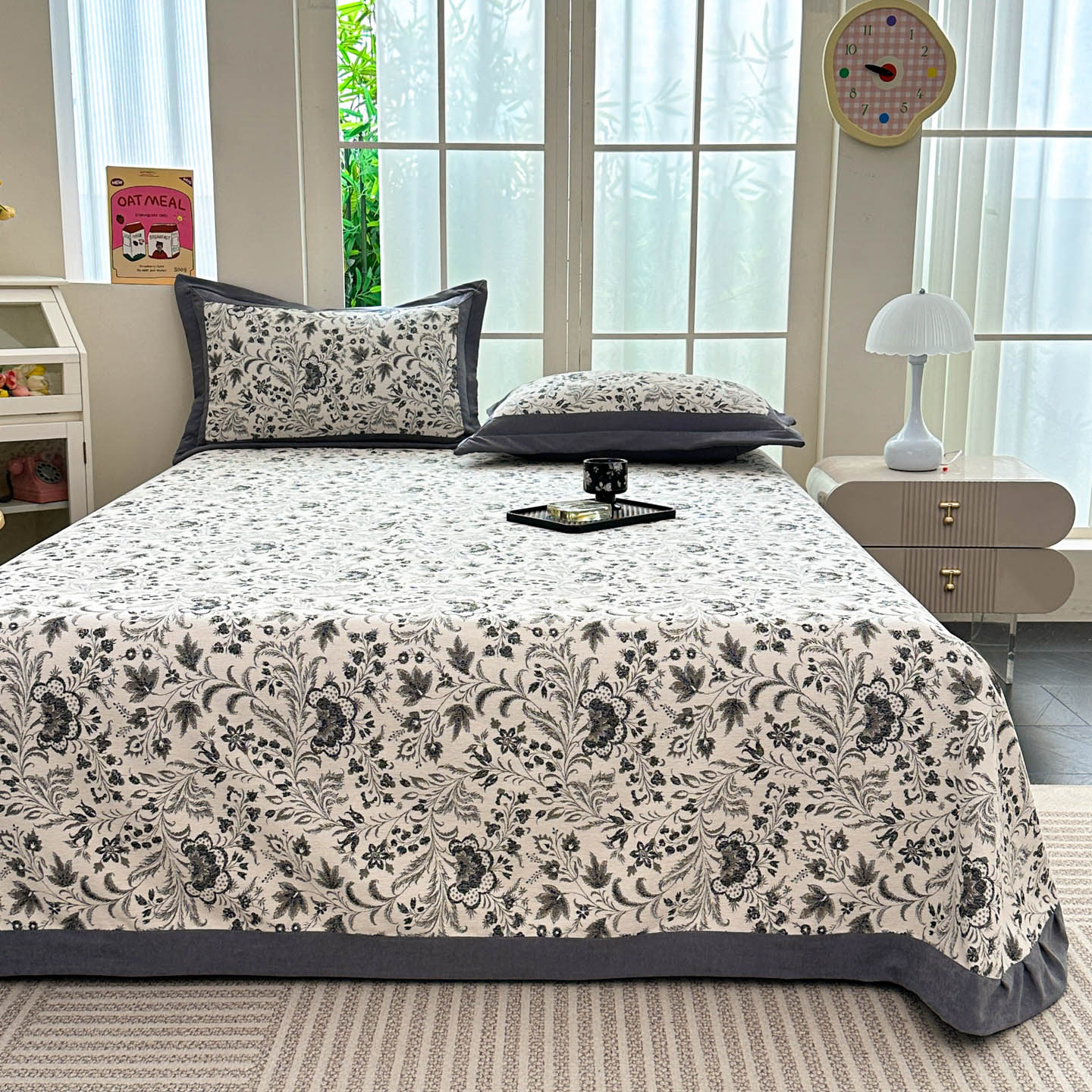 紫碧螺家纺 2025新款雪尼尔欧式拼色床盖三件套 春漾拼奶灰