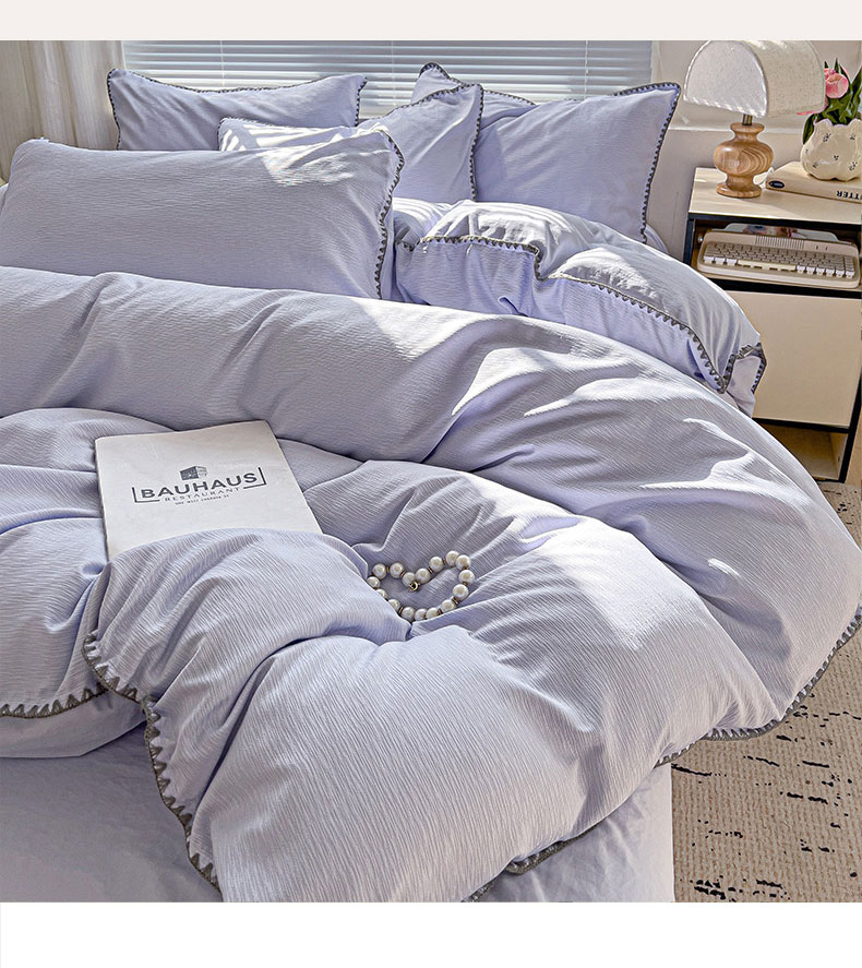商品名称:卡普家居 2025新款A类轻奢贝壳绣丝柔缎提花被套 丝柔缎-浅紫