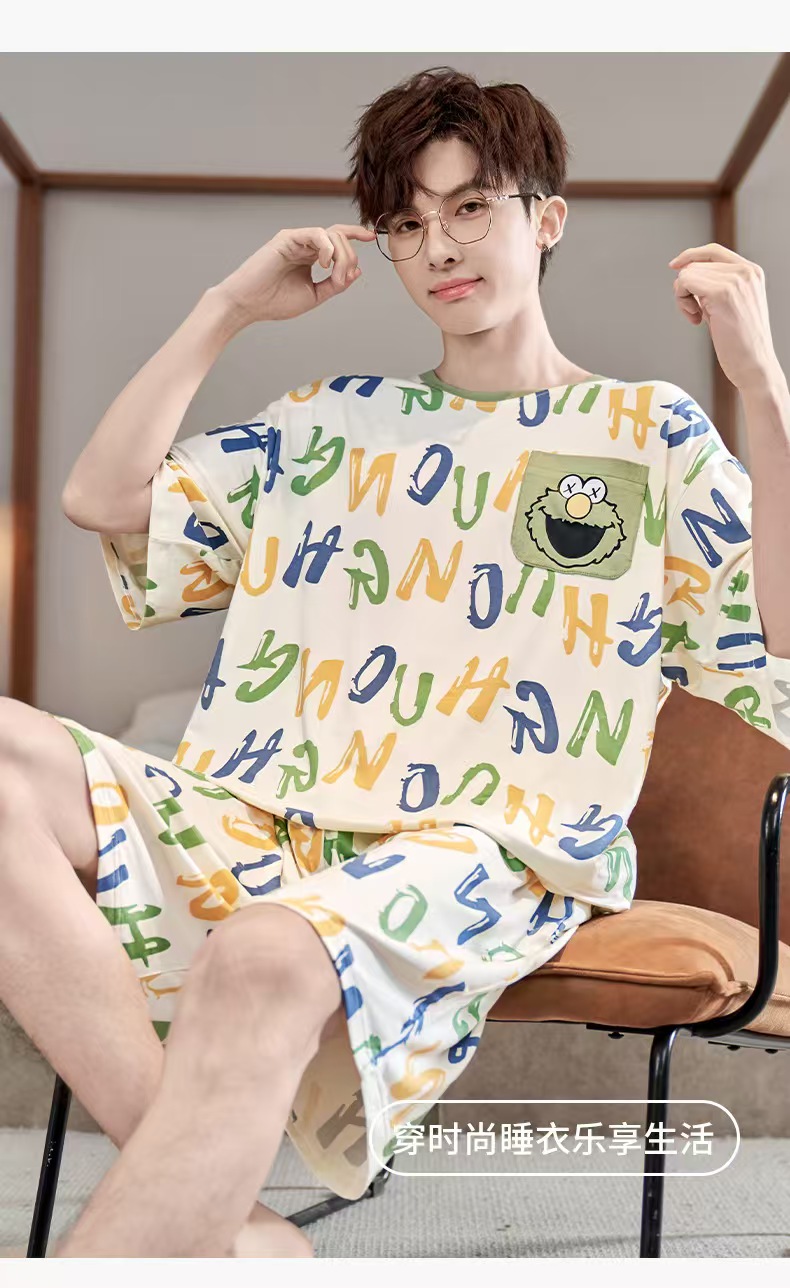 当前位置: 91家纺网 > 商品网购 > 居家日用 > 睡衣/家居服套装 > 洛兰沙家居馆【只代发】【只代发】 2025新款莫代尔凉感柔软男士睡衣夏季薄款卡通动漫大男孩可外穿宽松男款家居服套装 ls1715