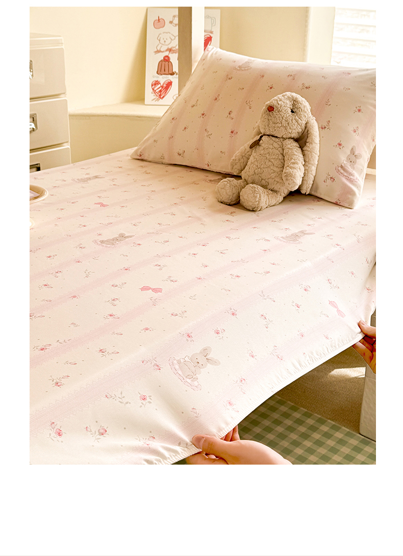多品家纺 2025春夏新款超柔云感水洗棉单床笠 床笠单件-学生宿舍床 小兔斑比