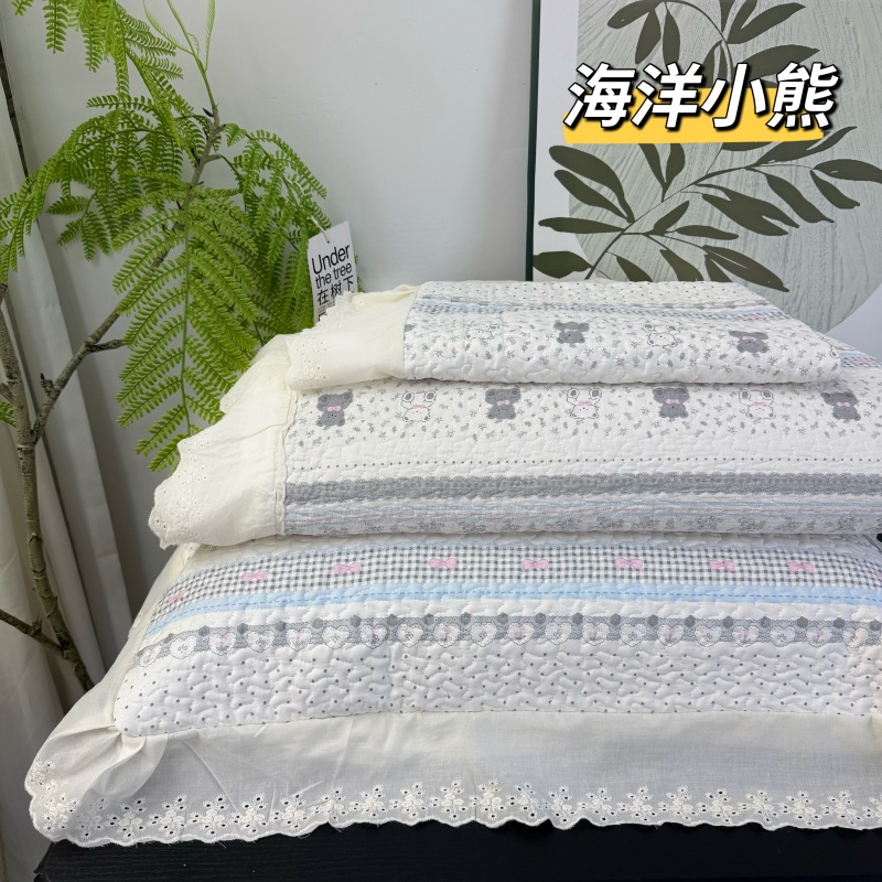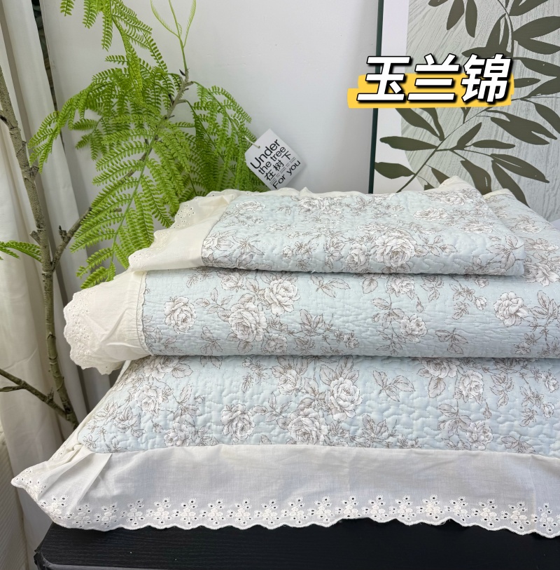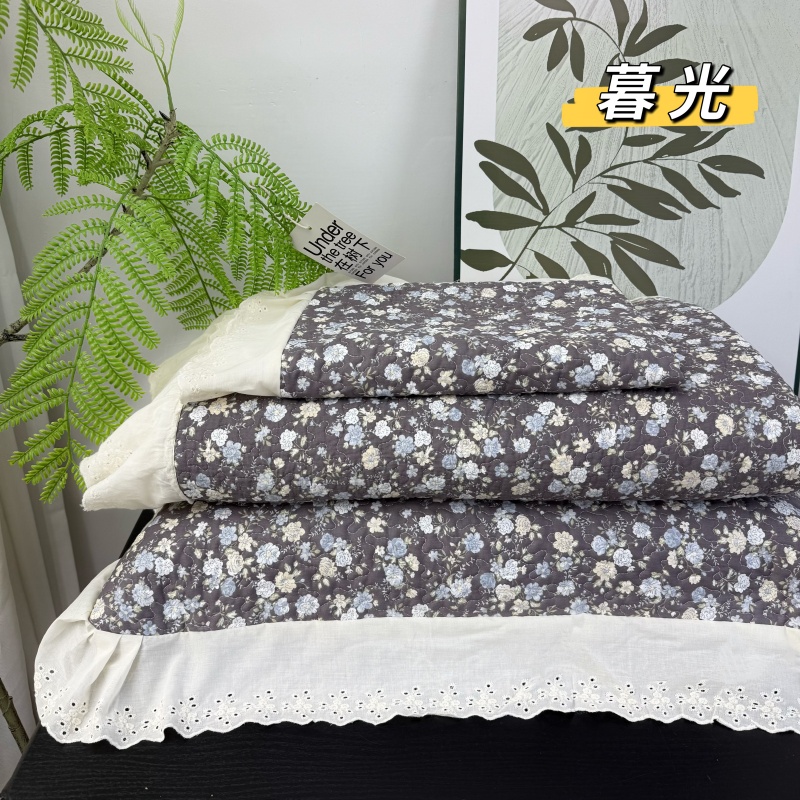 (总)赫本纯棉床盖三件套 韩国碎花纯棉床盖三件套全棉夹棉床单花边可机洗