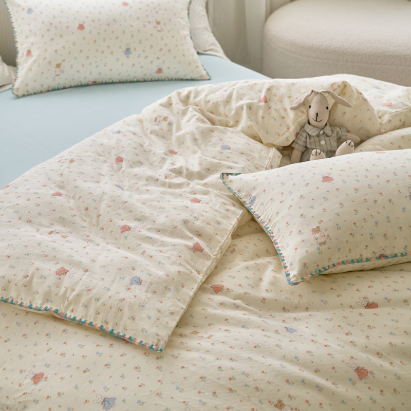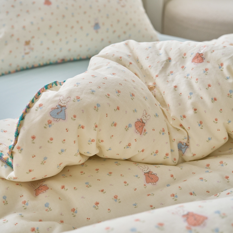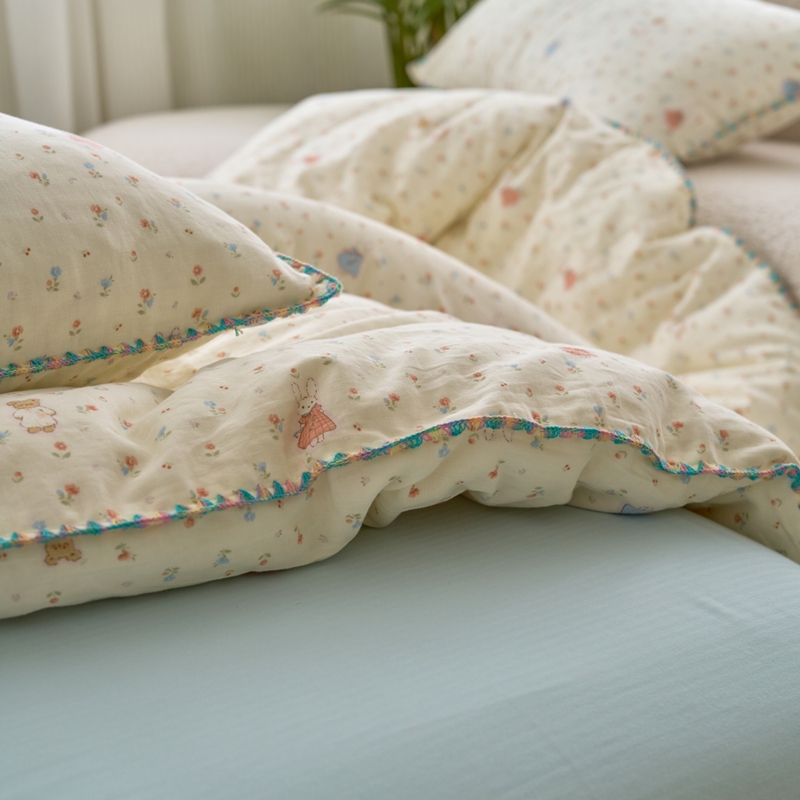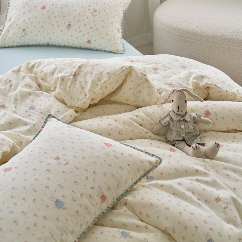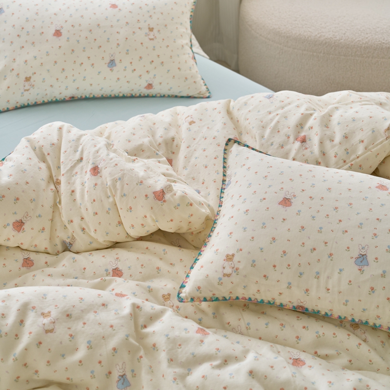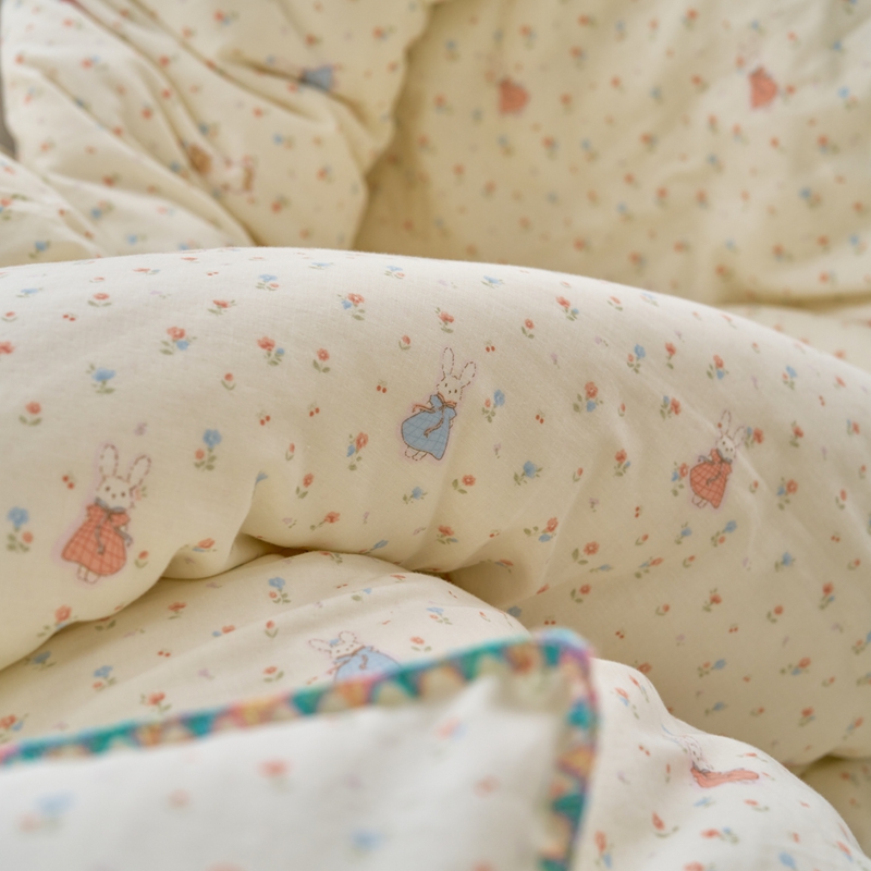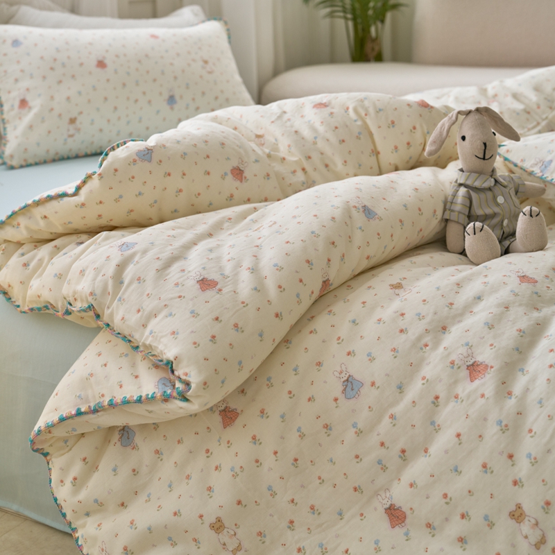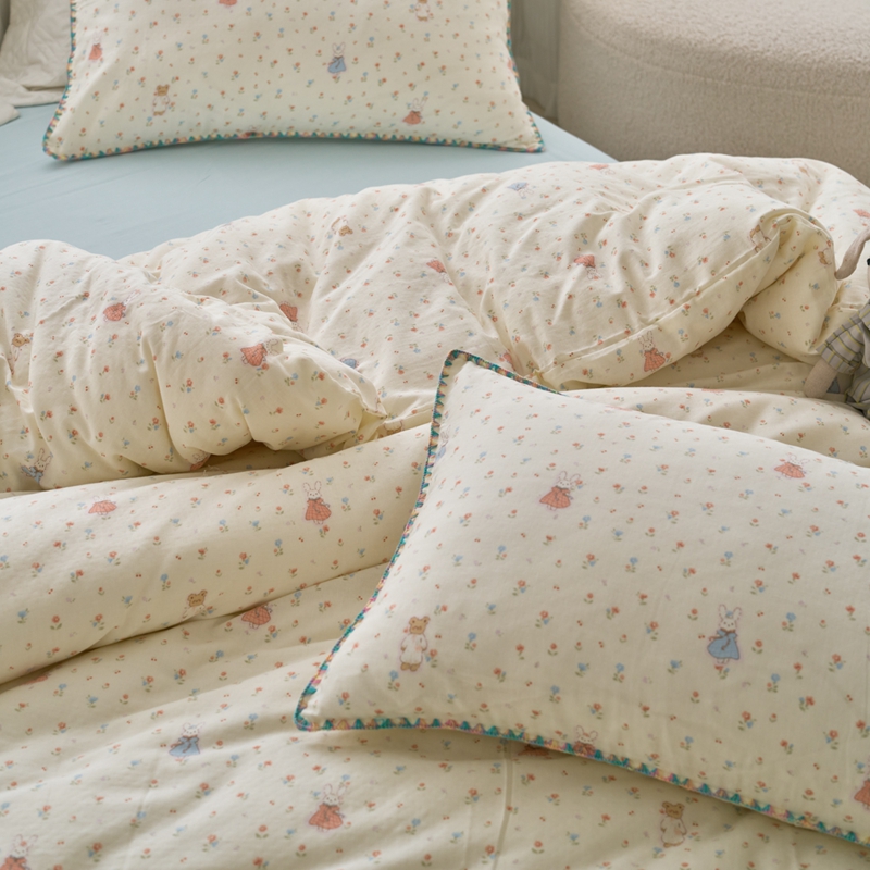洋铭区(原狠狠爱) 2025新款全棉彩边双层四件套 花田小兔