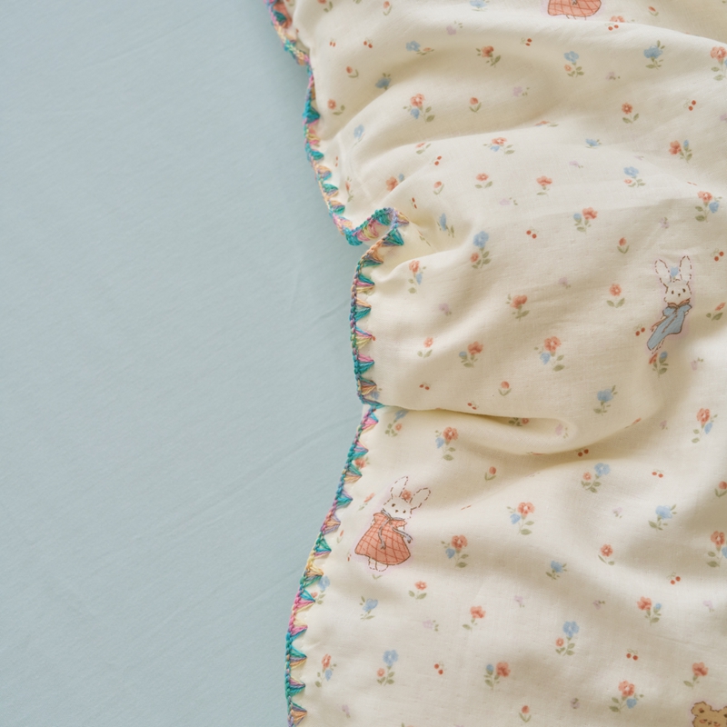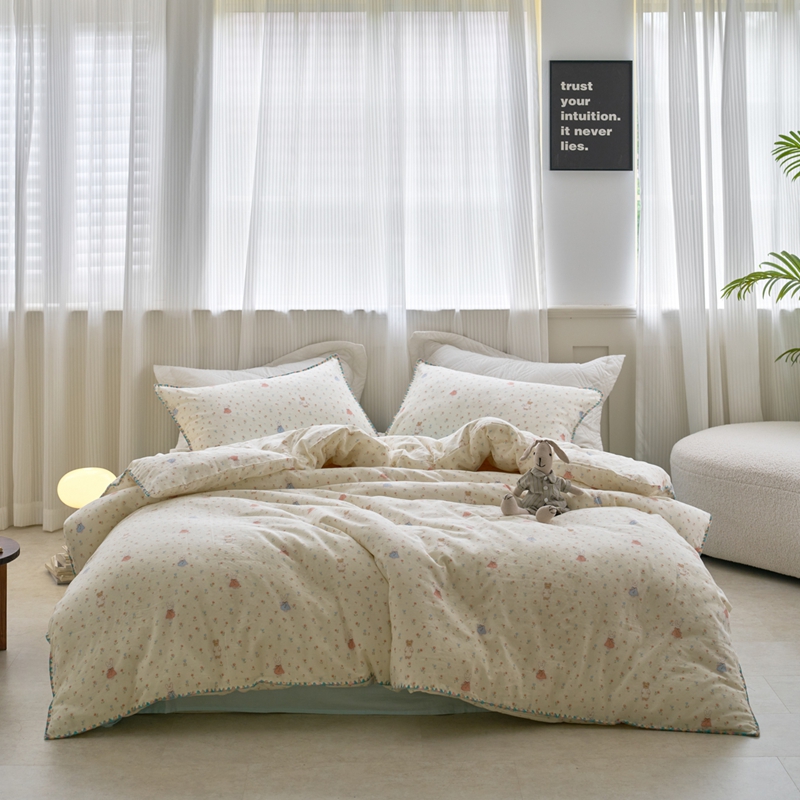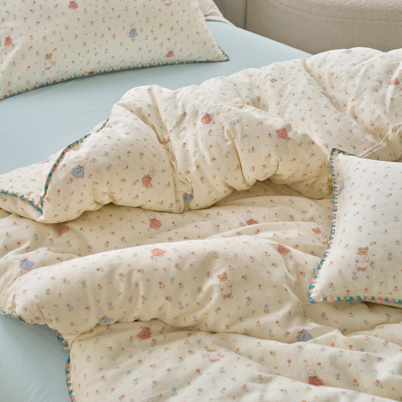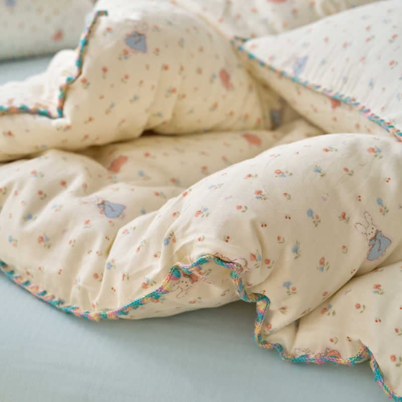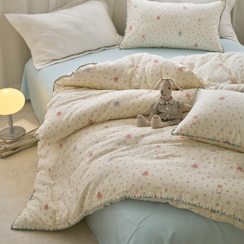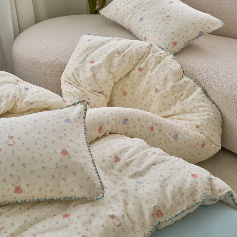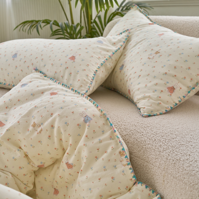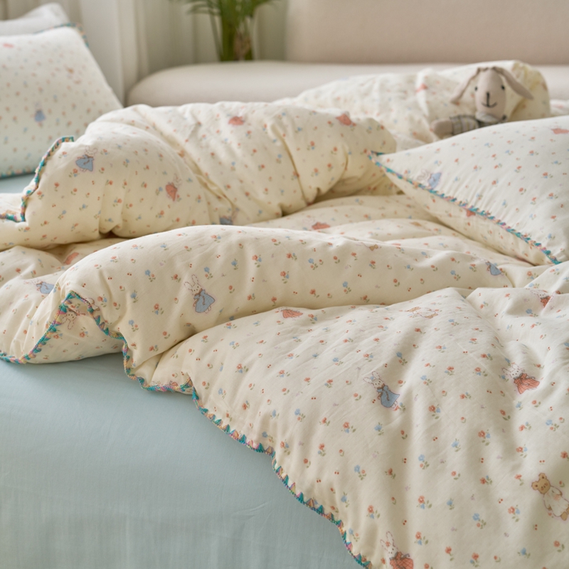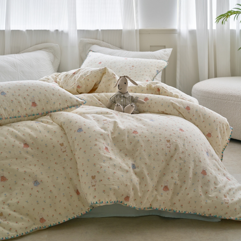 洋铭区(原狠狠爱) 2025新款全棉彩边双层四件套 花田小兔