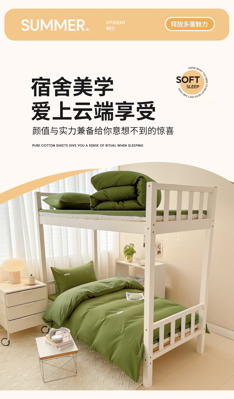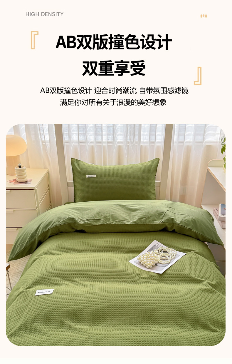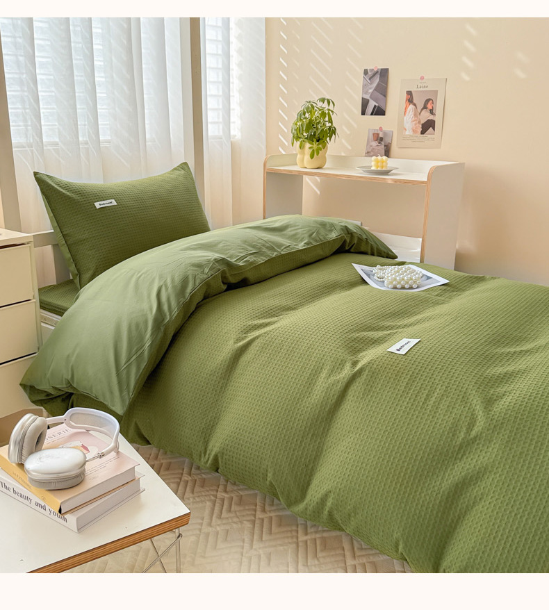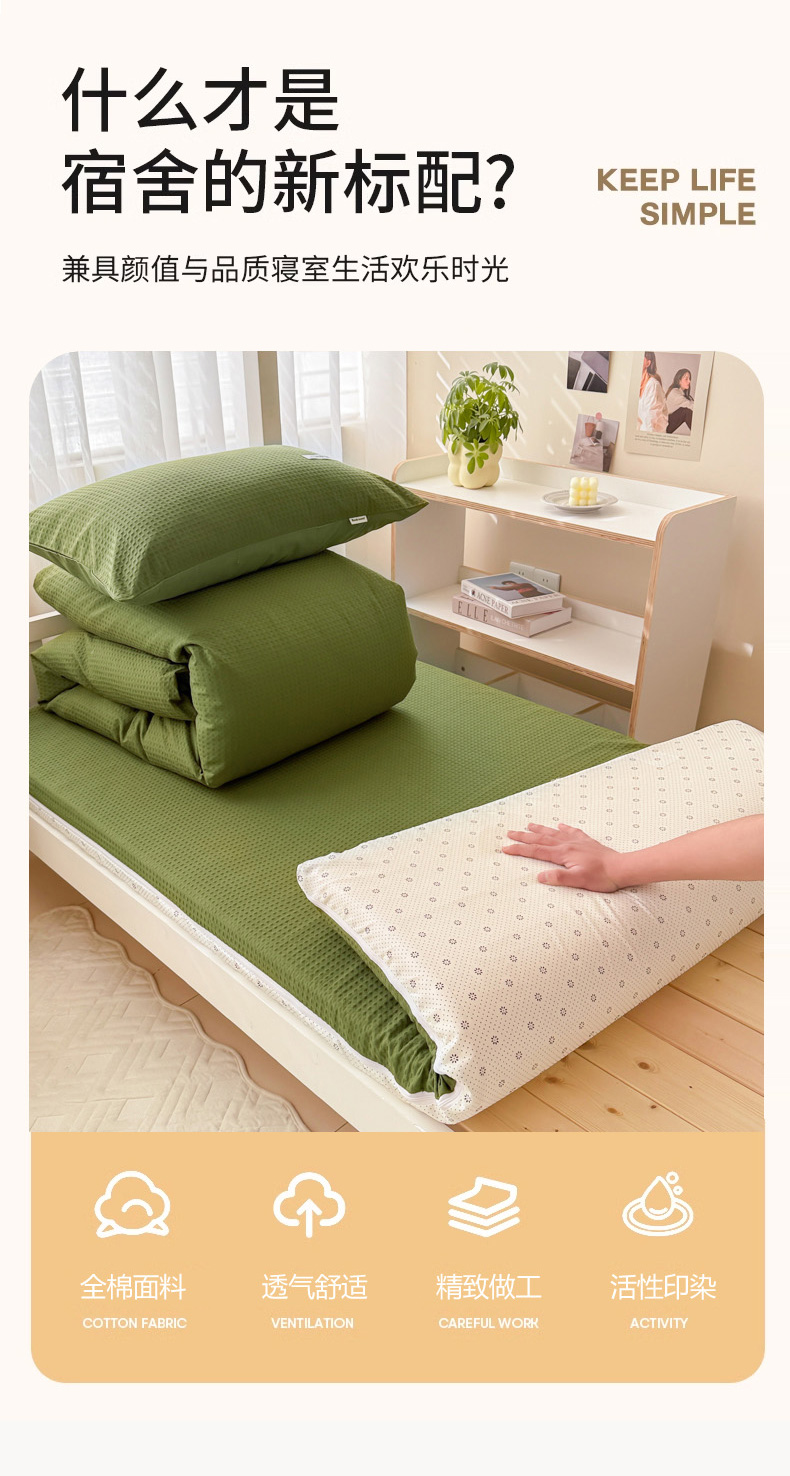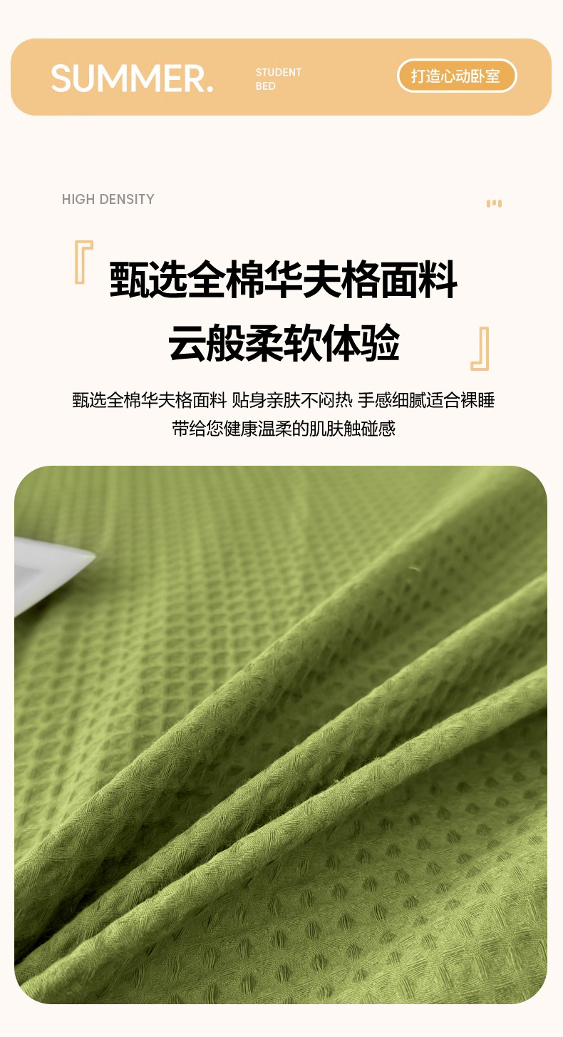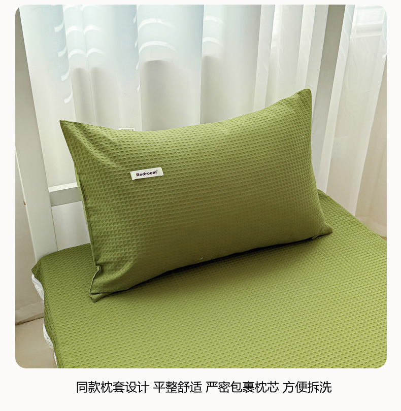 当前位置: 91家纺网 > 商品网购 > 床品套件 > 四件套 > 全棉普通四件套 > 眠博士 2025新款全棉纯棉华夫格学生床床垫套三件套四件套 华夫格床垫套 套件 松石绿