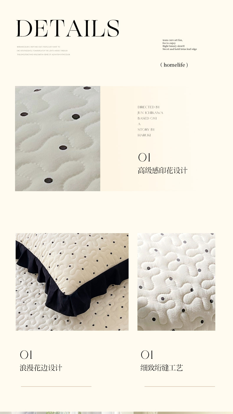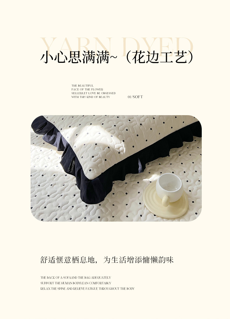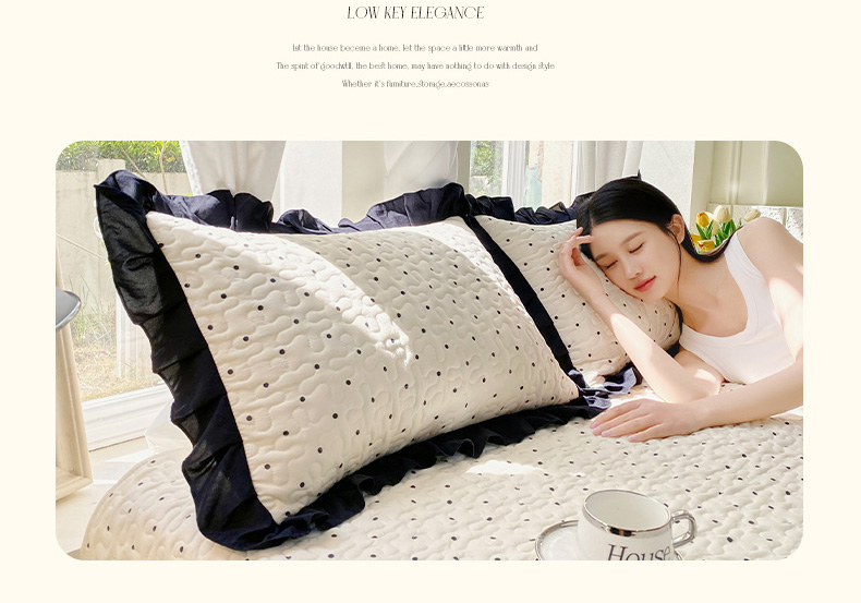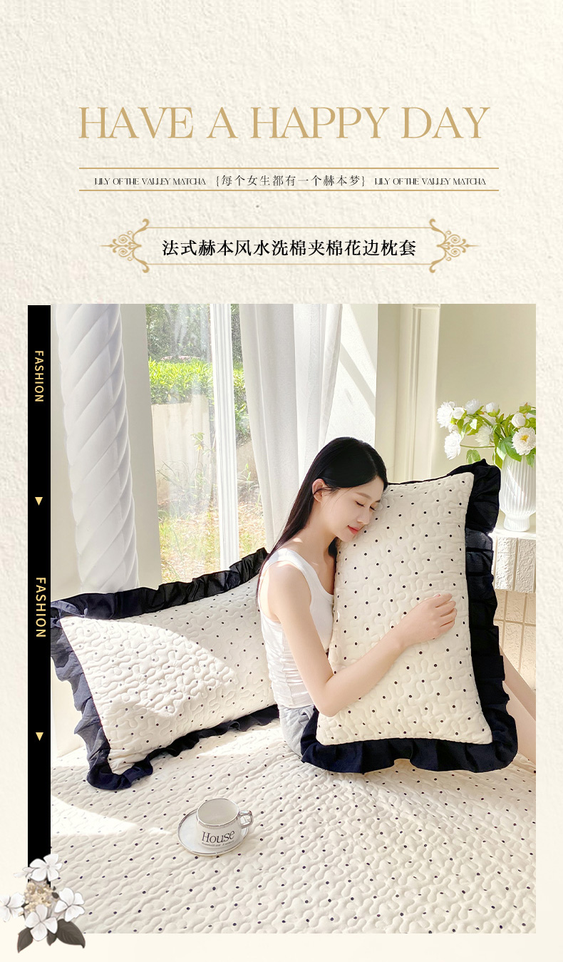 商品名称:雨彤家纺2025新款赫本风水洗棉夹棉花边枕套 小波点